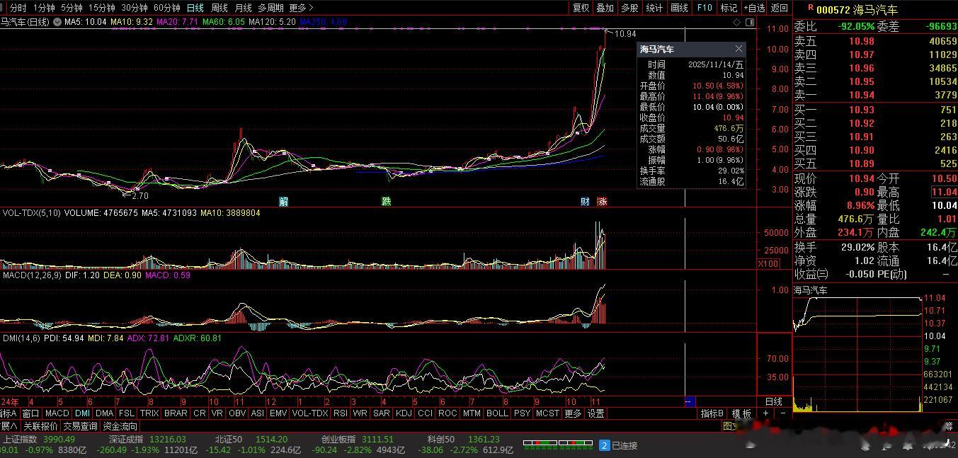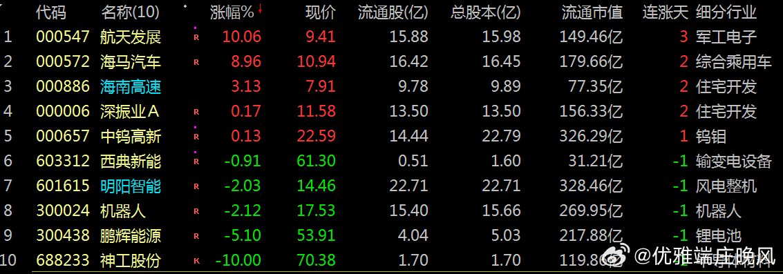 【财富晚茶】十大利好(11.15):追寻沪深北市十大利好信息的股票导语:作者系《网易号》优质财经领域创作者。曾经原创作者和知名网易号旅游领域创作者。大跨度行业等的写作,颇受网友喜爱。作品发表于 2025.11.15.23:58 优雅端庄晚风。编者的话:追寻市场:蛛丝马迹动态趋势。今天主题:【财富晚茶】十大利好(11.15):追寻沪深北市十大利好信息的股票。最新市场:新鲜出炉:2025.11.15.23:58 十大利好股票参考。偏重其中:机构分析、龙虎榜数据、高成长性潜力等。综合筛选:涵盖军工电子、综合乘用车、住宅开发等领域。兼顾短期:热点长期估值。每个股票:附简要利好原因。一、主力资金:市场表现前三佳股票航天发展(000547) 海马汽车 (000572) 海南高速 (000886)二、主力资金:十大利好信息的股票1、西典新能(603316)核心逻辑:储能系统集成商。晚间点评:机构单日净买入7434万元,技术路线覆盖锂电/钠电双赛道,适配多元储能场景,近期量价齐升。2、海马汽车 (000572)核心逻辑:海南自贸港封关预期(12月18日)。晚间点评:推动区域主题活跃,公司作为海南本地股直接受益。3、鹏辉能源(300438)核心逻辑:储能与动力电池龙头。晚间点评:2025年聚焦大圆柱电芯量产,技术壁垒支撑其发展,获海外大额订单。4、神工股份(688233)核心逻辑:全球大直径硅材料第一梯队企业。晚间点评:2025年上半年营收同比增长66.53%,净利润同比增长925.55%,游资参与活跃。5、海南高速 (000886)核心逻辑:承担环岛高速扩建等千亿级基建。晚间点评:土地储备超千亩,物流需求驱动土地增值。6、航天发展(000547)核心逻辑:地缘局势与装备升级订单驱动。晚间点评:标的具备重组预期。7、机器人(300024)核心逻辑:工业机器人龙头。晚间点评:产能释放叠加智能制造政策支持,主力资金净流入5.58亿元。8、深振业A(000006)核心逻辑:深圳国资改革板块。晚间点评:受益于并购重组政策及资产注入预期。9、明阳智能(601615)核心逻辑:海上风电设备制造商。晚间点评:受益于增值税政策调整及海上风电运营商红利。10、中钨高新(000657)核心逻辑:硬质合金龙头。晚间点评:机构单日买入1.75亿元,游资同步加仓。光伏金刚线需求激增推动钨丝渗透率提升,技术面呈现突破形态。风险提示1、部分科技板块亦或估值偏高需留意外部环境。2、美联储政策中美贸易摩擦内部经济不确定性。三、主力资金:其他利好信息的股票1、海德股份 (000567)核心逻辑:海南唯一持有AMC牌照的企业。晚间点评:参与跨境资管试点,合作高盛、贝莱德,科技赋能提升效率。2、长江能科(920158)核心逻辑:电脱设备市占率国内第一。晚间点评:是原油外输及炼化环节的关键设备,可处理高含盐、高含水原油,含水率可降至0.5%以下,并支持DCS远程操控,适配复杂工况。布局氢能、LNG清洁能源设备等新赛道,已获多项专利。2024年新增订单市占率约48.52%。四、 创作不易:优质网易财经作者投资投机迷茫之中:给予尽可能有帮助:资本市场风险自负。(优雅端庄晚风《网易号》财经领域创作者和原创作者 违者必究)