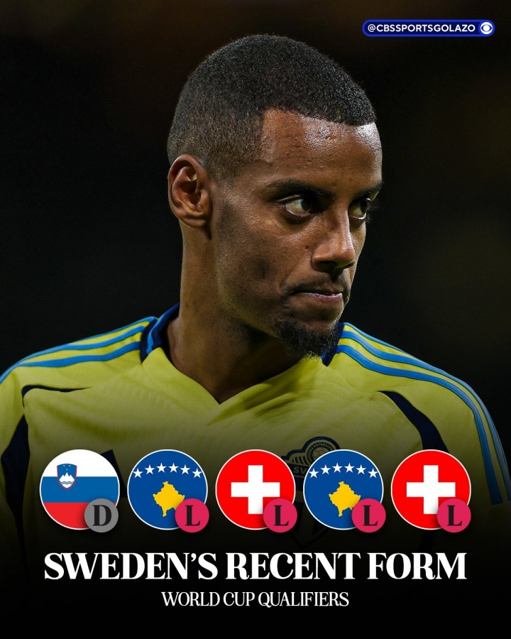 自从小组首轮战平斯洛文尼亚后,瑞典在世界杯预选赛赛场就一直连败,对阵瑞士和科索沃均遭双杀,队内两大中锋伊萨克和约克雷斯也双双哑火。最新一场不敌瑞士的比赛中,约克雷斯因伤未能进入名单,伊萨克在第62分钟替补登场也没能影响比赛走势。