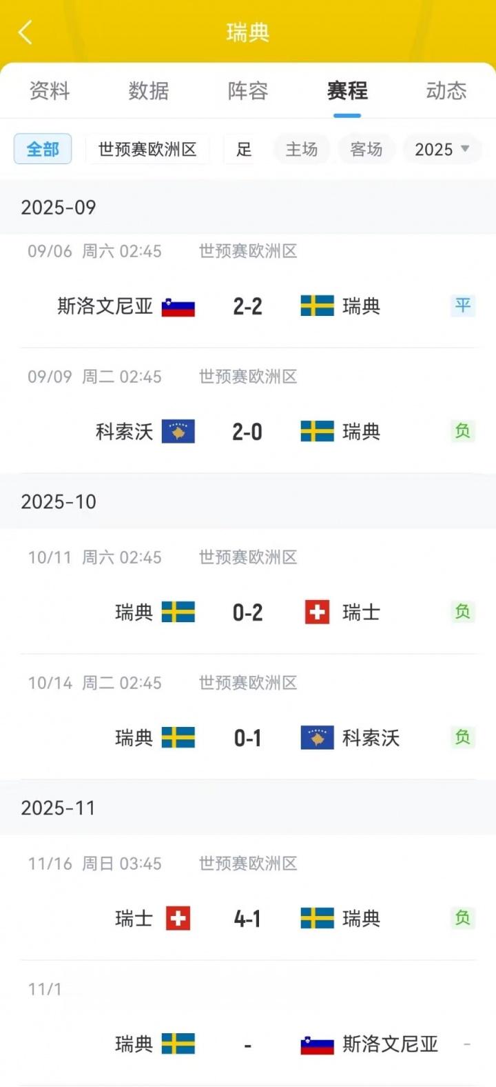 直播吧11月16日讯世预赛欧洲区B组第5轮,瑞典客场1-4遭瑞士横扫,5轮过后仍一胜难求。