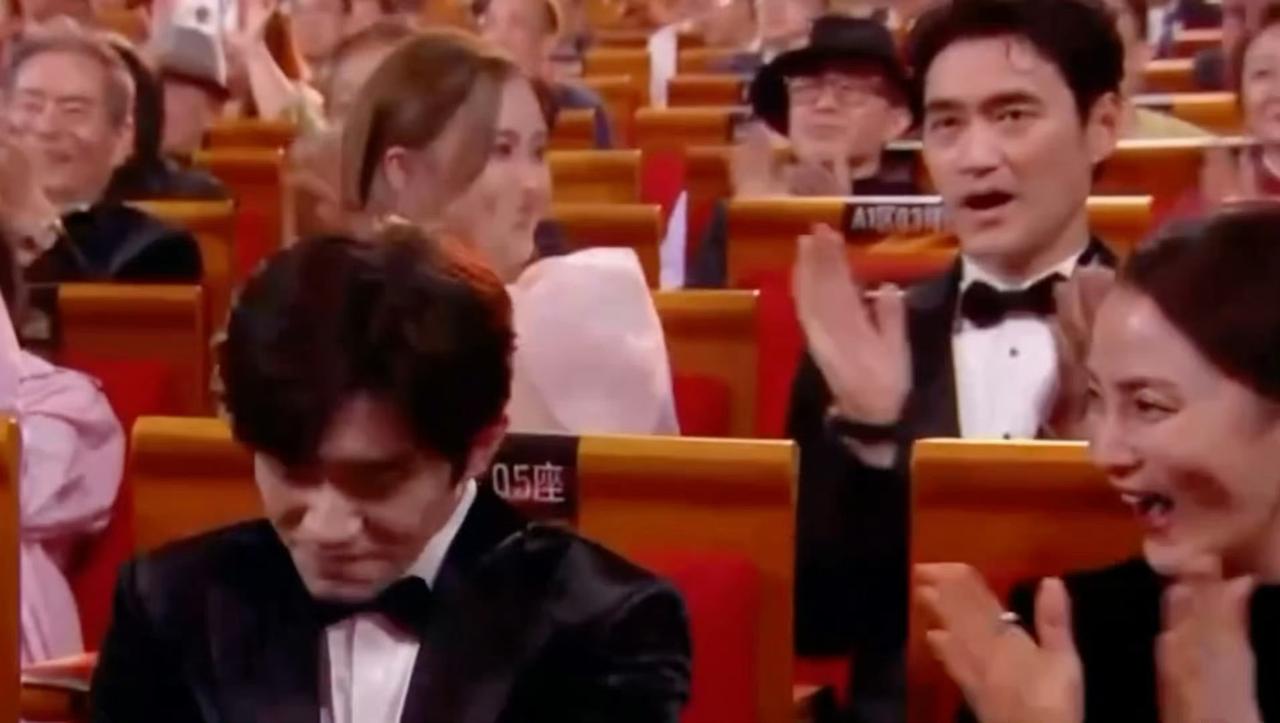 谁看了不说易烊千玺拿金鸡影帝是众望所归! 家人们谁懂啊!易烊千玺拿金鸡影帝那阵仗,全是名场面!《小小的我》剧组直接集体起立祝贺,排场拉满。 黄晓明举着手机怼脸拍他发言,生怕漏了细节;王传君特意俯身,听得超认真。蒋勤勤鼓掌鼓到眼泛泪光,张歆艺和袁弘手都拍红了,刘昊然笑得眼睛都眯成缝,罗一舟直接高举双手欢呼。 下台后梁家辉主动伸手鼓励,散场时陈道明也特意找他握手,这满场的认可,说一句“实至名归”不过分吧!