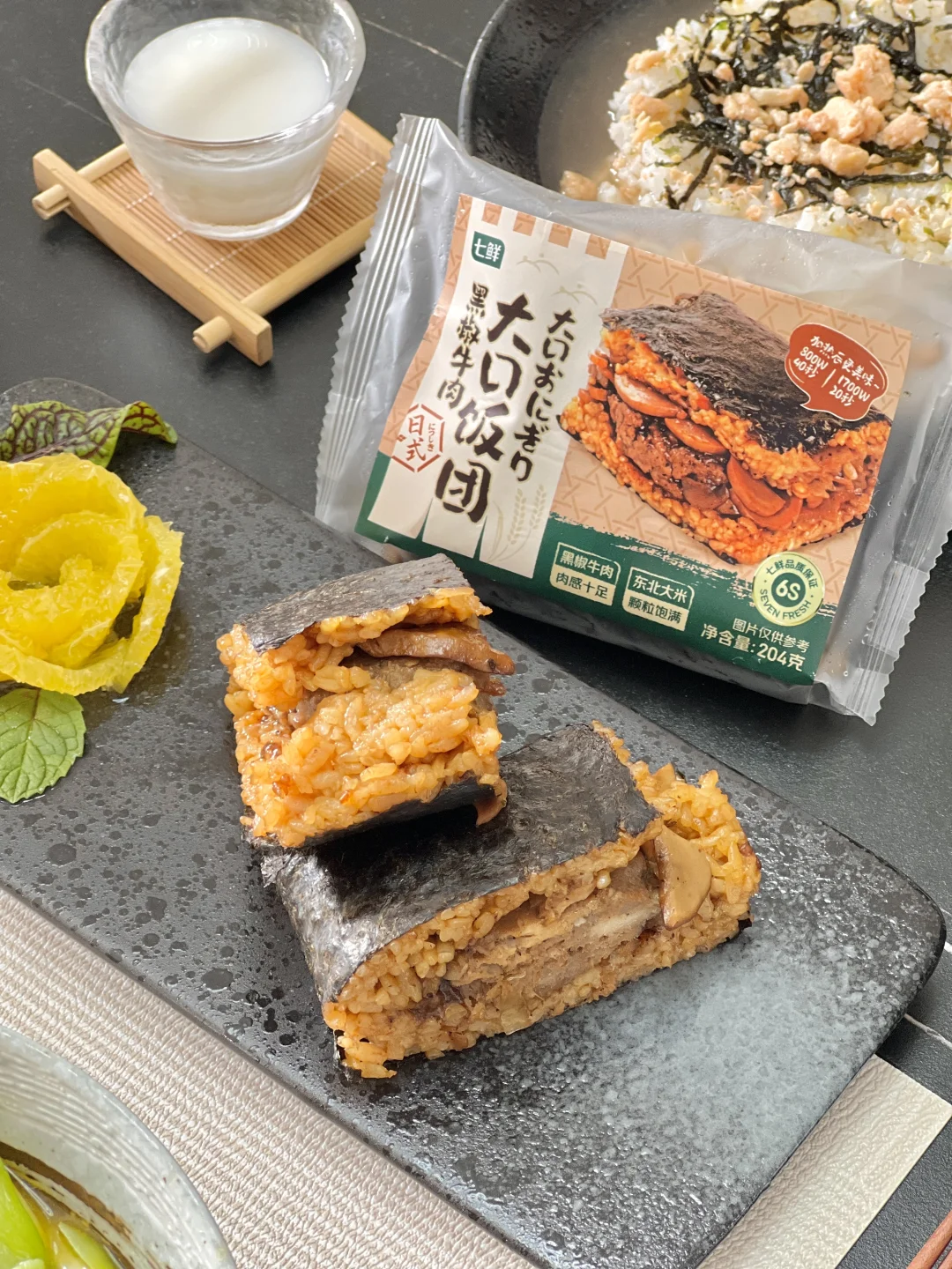 [星R]黑椒牛肉大口饭团(8.9元):经过黑椒的调味后的牛肉,配上香甜的米饭,捏成一个个大口饭团,简单却不失美味~
