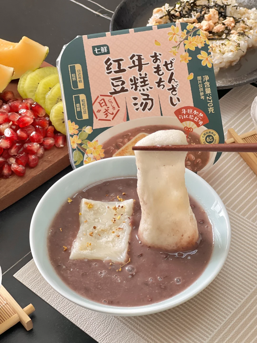 [星R]红豆年糕汤(8.9元):在微波炉叮一分钟就能get樱桃小丸子同款耶!红豆汤底浓郁香甜,年糕糯叽叽的,咬开还有超治愈的拉丝效果,低成本就能获得的冬日幸福感~