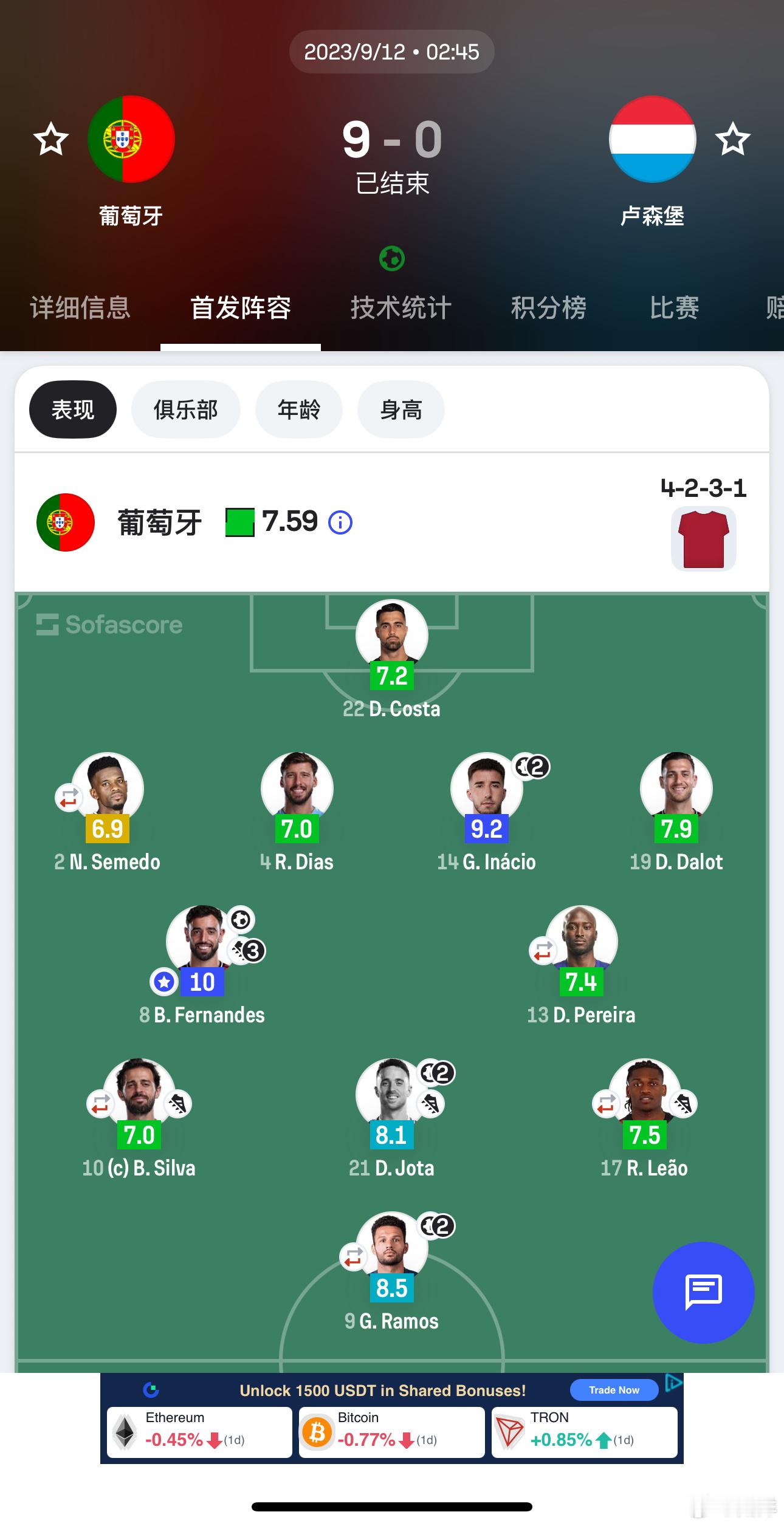 葡萄牙攻击群过年了,大比分顺利出线,这队上次进9个还是两年前踢卢森堡,这两场有个
