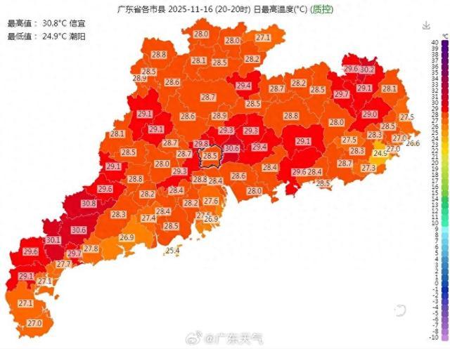 19日,粤北市县多云到阴天,局部有小雨,中南部市县阴天,有零星小雨。气温维持在较低状态,天气寒凉,最低气温:粤北和珠三角北部市县6℃—9℃,南部沿海市县13℃—15℃,其余市县10℃—12℃。