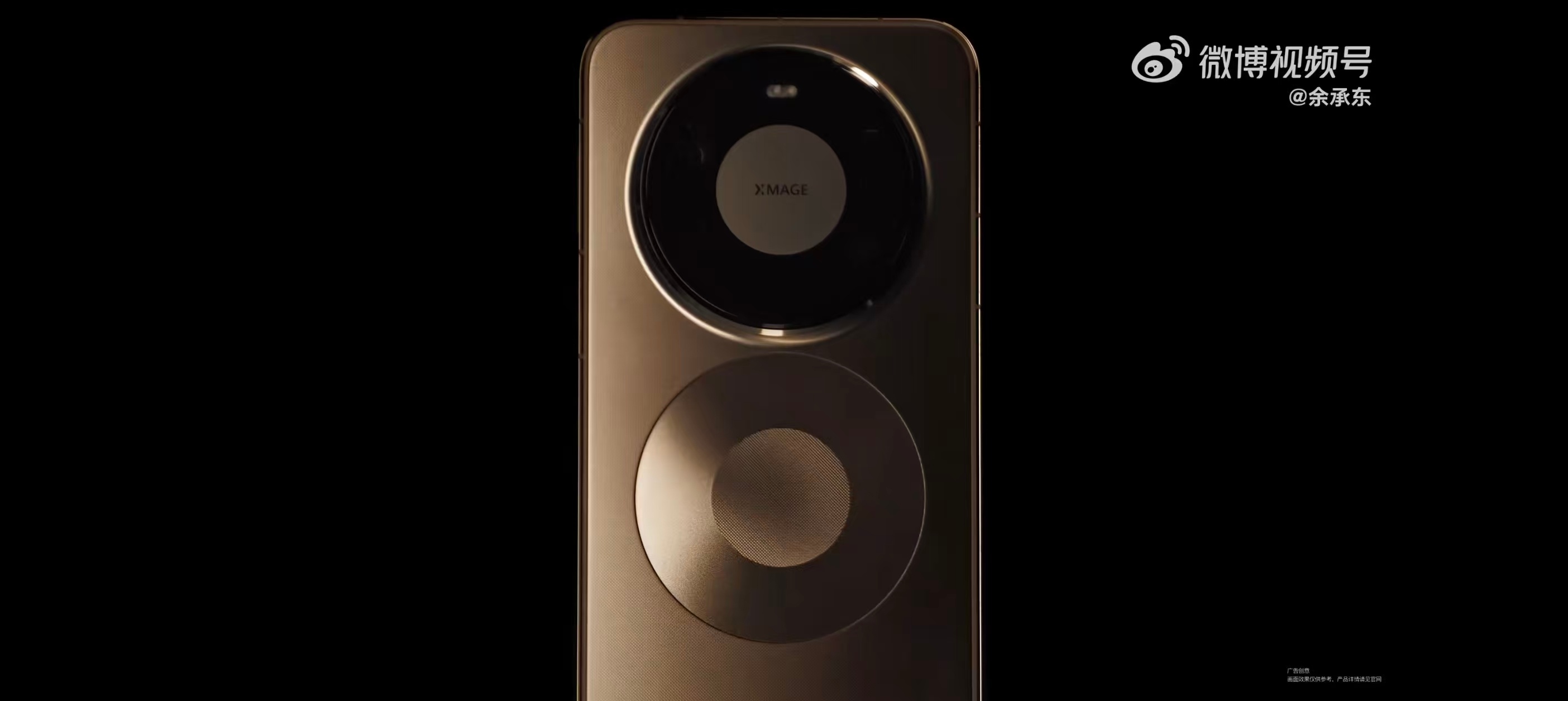 华为Mate80外观公布,余承东亲自揭秘。延续中轴对称圆环镜头模组,下方有磁