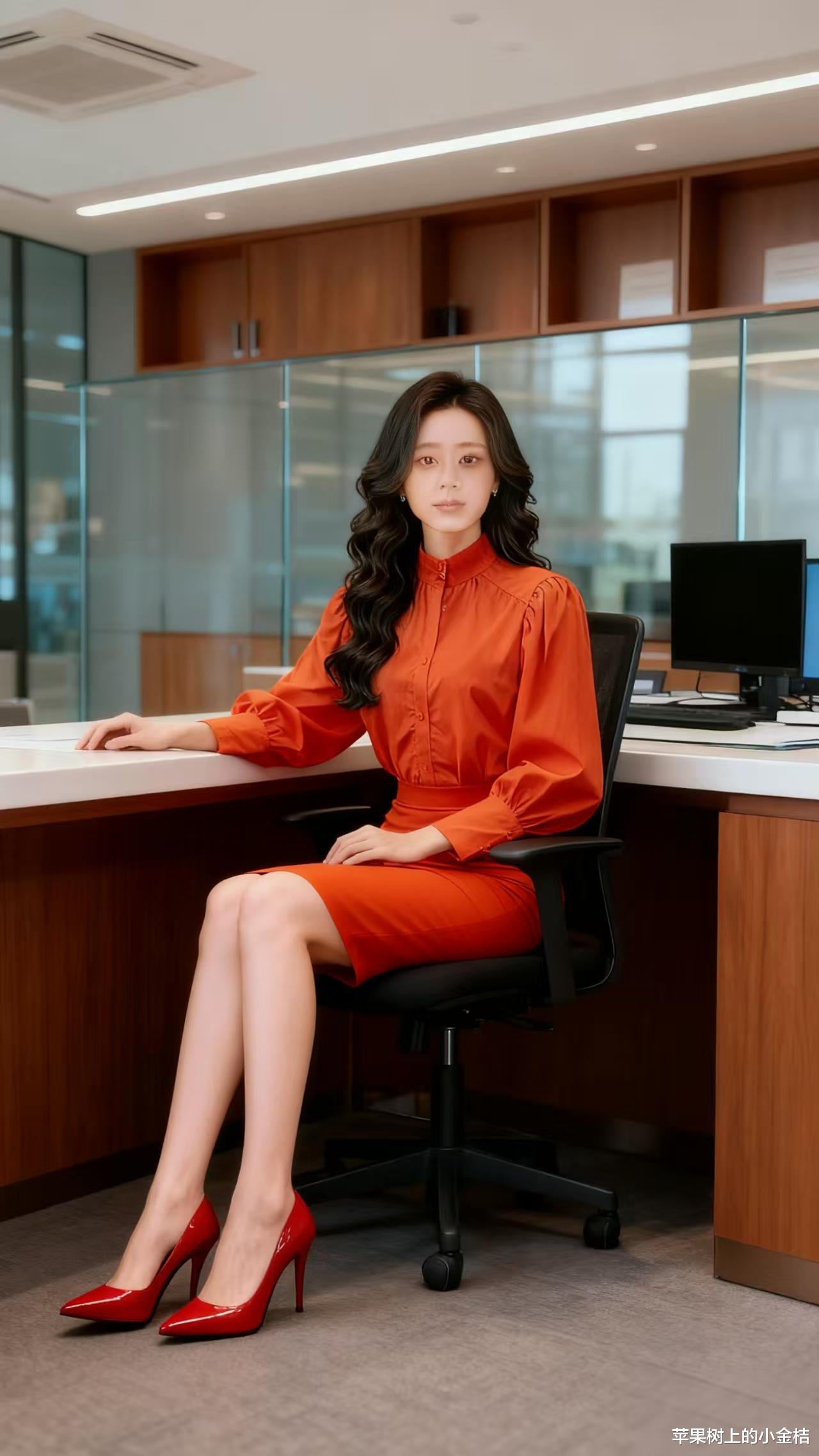 - 下装搭配同色修身包臀裙,长度刚好到膝盖附近,显得干练又优雅。