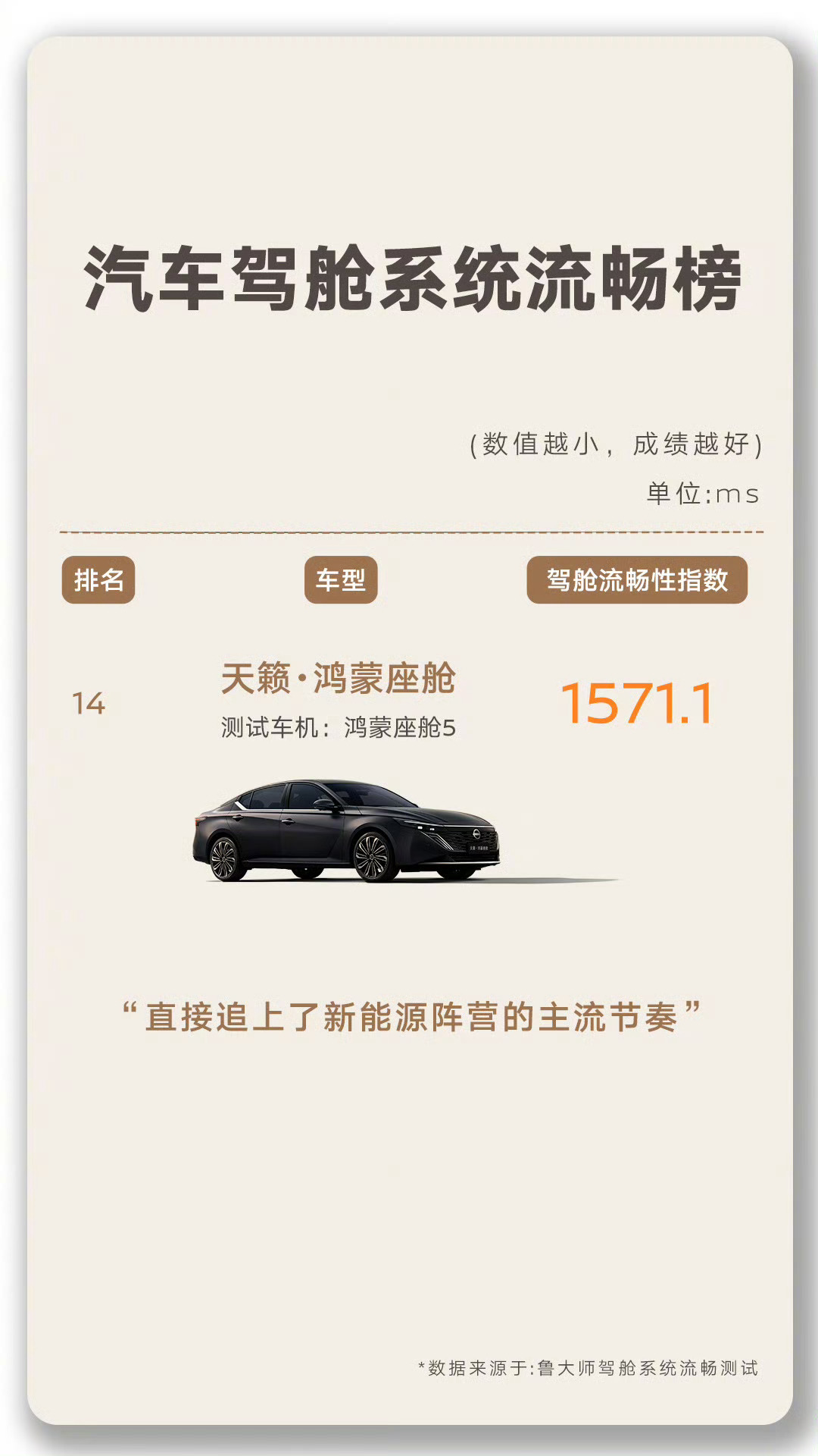别再说燃油车智能不行了,天籁·鸿蒙座舱带着鲁大师实验室的“成绩单”砸场子来了!10轮魔鬼测试、34项交互单元全面解剖,导航规划510.42毫秒闪电响应,比你刷短视频切换还快;座椅调节106.67毫秒“触即动”,刚碰到按键腰托就自己调整到位;应用滑动102.5毫秒跟手如德芙,手指还没移开画面就跟到终点。只能说鸿蒙座舱5.0这波“神助攻”真的太狠了,车机像揣了块电竞级芯片,点击、滑动、语音指令全链路无卡顿。最绝的是它“鱼和熊掌都要”:既偷师新势力的智能灵魂,又死磕燃油车的驾驶质感,方向盘稳得像老司机端茶杯,车机快得像年轻人刷手机。以前笑燃油车智能“掉队”的,现在脸疼不?天籁用数据告诉你:智能化不再是电动车的专属剧本了,燃油车玩起来更懂老司机的心。下次谁再哔哔“油车没未来”,直接把这张跑分榜甩TA脸上——导航快过手机、调节快过眨眼、滑动快过电竞, ,这波逆袭我给100昏!