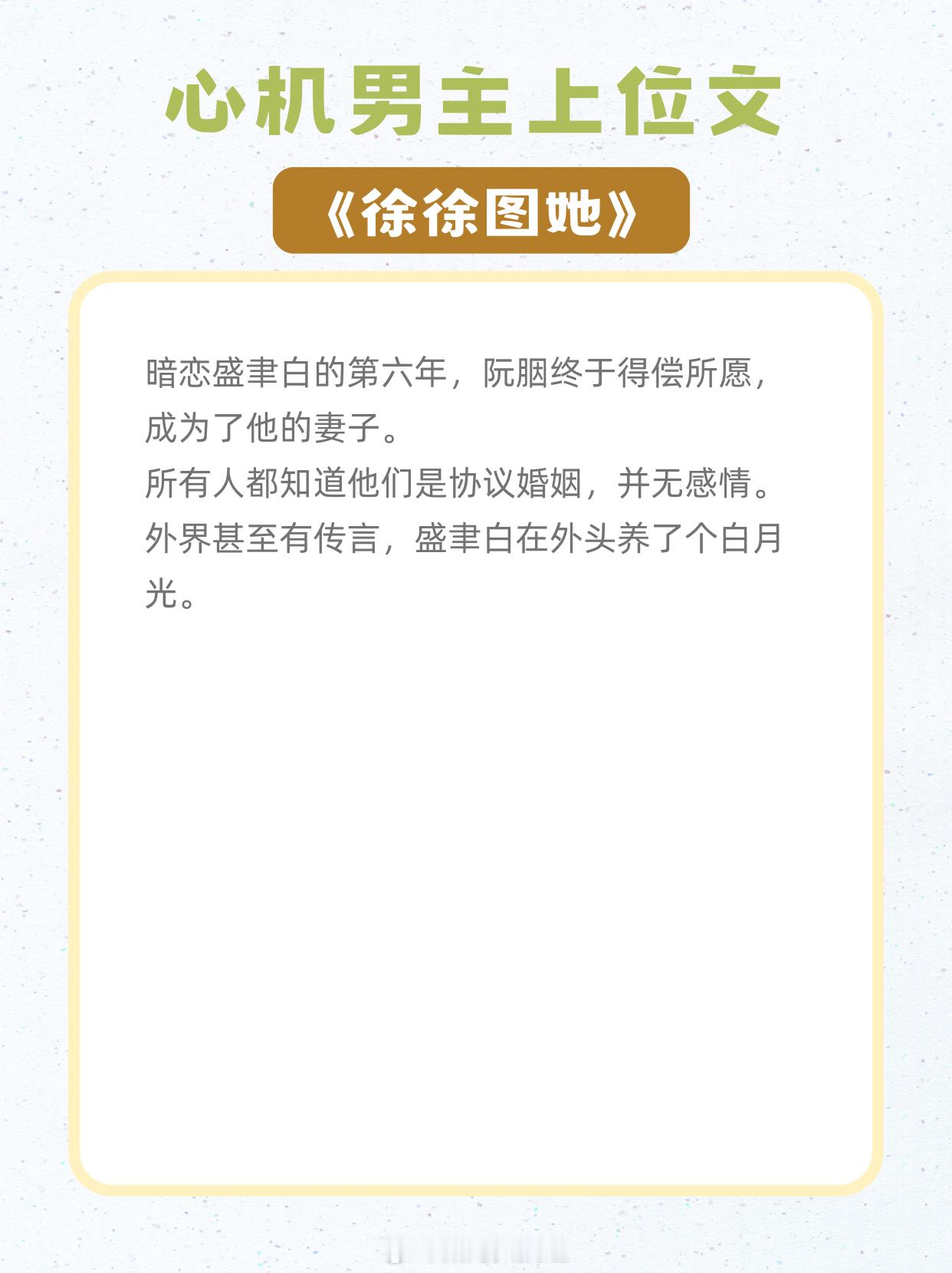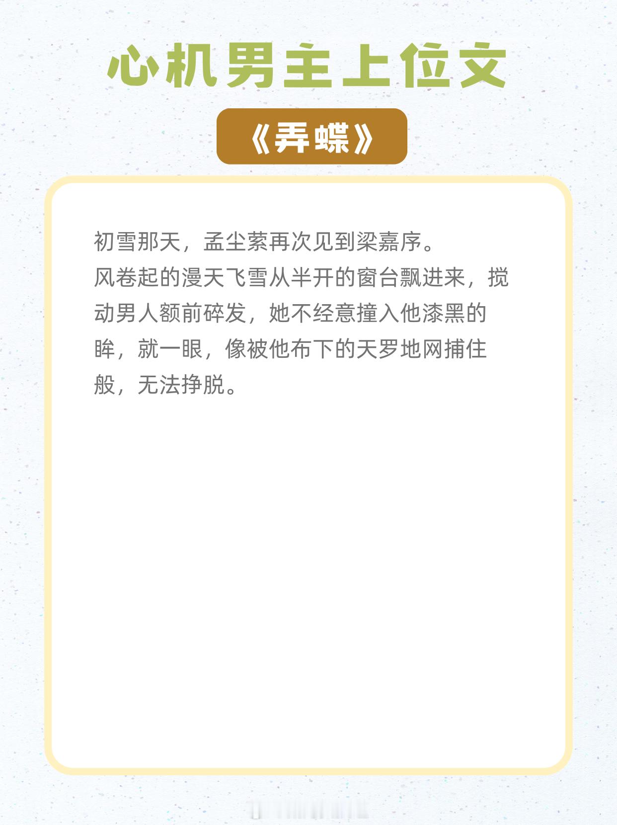 心机男主腹黑上位的言情,她是他掌中飞不出去的蝶。1、《非分之想》川澜2、《随便找个人结婚吧》银八3、《弄蝶》即枫4、《徐徐图她》袖刀5、《占有欲》芒厘6、《谁能不爱绿茶呢》桃子薄荷7、《就范》苏钱钱8、《天作之合》姜之鱼9、《娇娘在怀》作者:舒沁橙