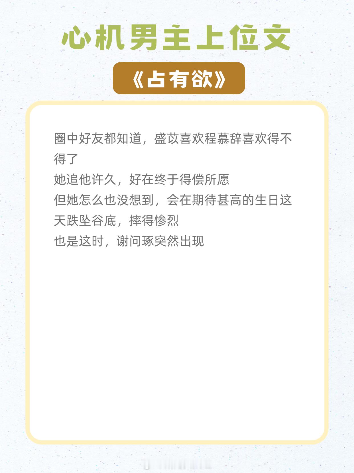 心机男主腹黑上位的言情,她是他掌中飞不出去的蝶。1、《非分之想》川澜2、《随便找