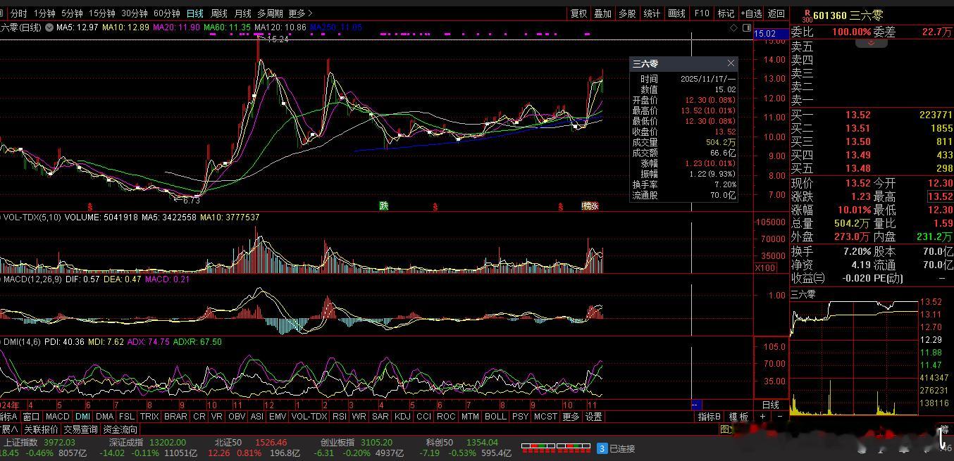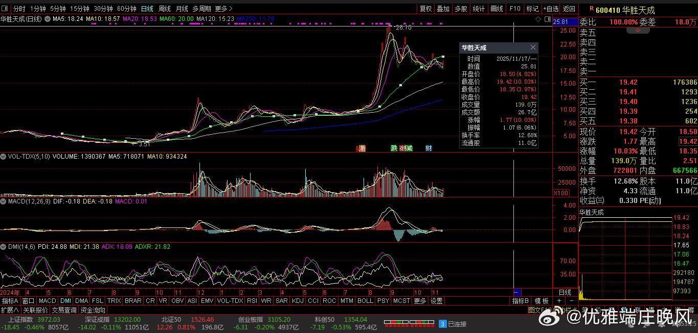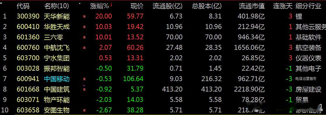 【财富晚茶】十大利好(11.17):追寻沪深北市十大利好信息的股票导语:作者系《网易号》优质财经领域创作者。曾经原创作者和知名网易号旅游领域创作者。大跨度行业等的写作,颇受网友喜爱。作品发表于 2025.11.17.22:18 优雅端庄晚风。编者的话:追寻市场:蛛丝马迹动态趋势。今天主题:【财富晚茶】十大利好(11.17):追寻沪深北市十大利好信息的股票。最新市场:新鲜出炉:2025.11.17.22:18 十大利好股票参考。偏重其中:机构分析、龙虎榜数据、高成长性潜力等。综合筛选:涵盖锂、云服务、航空装备等领域。兼顾短期:热点长期估值。每个股票:附简要利好原因。一、主力资金:市场表现前三佳股票天华新能(300390) 华胜天成(600410) 三六零(601360)二、主力资金:十大利好信息的股票1、中国移动(600941)核心逻辑:作为通信基础设施龙头。晚间点评:受益于“十五五”科技自立自强政策,5G及算力需求持续增长,资金防御性配置偏好高。2、物产环能(603071)核心逻辑:能源板块高股息属性突出。晚间点评:供给侧受安全督察限制,需求端供暖季开启,煤价上涨预期强化。3、安图生物(603658)核心逻辑:医疗器械国产替代加速。晚间点评:三季报业绩超预期,医疗板块估值修复需求显著。4、振邦智能(003028)核心逻辑:智能电网与储能设备需求爆发。晚间点评:政策推动新型电力系统建设,订单量持续增长。5、宁水集团(603700)核心逻辑:水利基建投资加码。晚间点评:智慧水务渗透率提升,低估值叠加政策催化。6、三六零(601360)核心逻辑:网络安全政策加码叠加AI应用场景拓展。晚间点评:资金净流入14.39亿元,超大单占比25.01%。公司作为国内安全龙头,受益于数据安全需求提升及AI赋能。7、华胜天成(600410)核心逻辑:国产替代加速下存储芯片需求爆发。晚间点评:资金净流入12.26亿元,超大单占比47.52%。三星电子上调服务器内存合约价60%,国内长鑫存储产业链受益。8、中国建筑(601606)核心逻辑:基建投资增速回升至8%。晚间点评:地方政府专项债发行加速,资金净流入8.66亿元。公司作为基建龙头,订单饱满且估值低位。9、中航沈飞(002298)核心逻辑:国防军工板块逆势上涨1.59%。晚间点评:资金净流入8.60亿元。地缘政治风险短期可控,装备升级需求驱动业绩增长。10、天华新能(300390)核心逻辑:锂矿板块逆市走强。晚间点评:公司20cm涨停,资金净流入7.25亿元。新能源车需求回暖叠加锂价触底反弹,资源端弹性凸显。风险提示1、部分科技板块亦或估值偏高需留意外部环境。2、美联储政策中美贸易摩擦内部经济不确定性。三、主力资金:其他利好信息的股票1、污水处理武汉控股(600168)核心逻辑:国内一流环境综合服务商。晚间点评:污水处理占武汉市75.6%份额。从“单一水务商”升级为“环境综合服务商”。长江大保护:流域治理项目加速获增量订单。与武汉市政院重组,重点布局AI数智化领域,包括数据治理、算力算法提升及智慧水务应用场景落地。2、VC概念产业孚日股份 (002083)核心逻辑:作为VC概念龙头。晚间点评:连续6个涨停板,累计涨幅达77.23%。主力资金3日净流入9.85亿元,机构席位参与度高,游资持续加仓。技术面突破年线压制,MACD金叉,短期上升趋势明确。四、 创作不易:优质网易财经作者投资投机迷茫之中:给予尽可能有帮助:资本市场风险自负。(优雅端庄晚风《网易号》财经领域创作者和原创作者 违者必究)