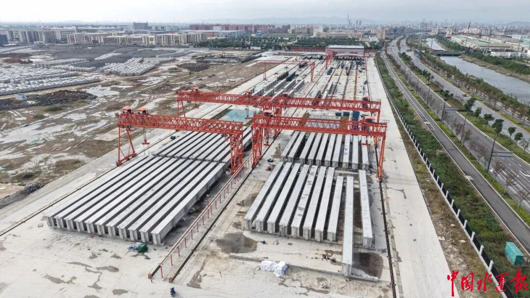 台州湾预制构件项目主要施工内容是为台州湾陆岛联动项目建设提供预制纵梁、面板、靠船构件、水平撑及引桥的T梁、空心板等预制构件,项目投入使用后,有助于减少台州湾陆岛联动项目施工的水上现浇工序,显著提高施工效率、缩短建设周期、提升工程整体质量和稳定性。