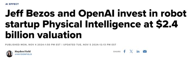 早在去年,他就投资了机器人AI公司PhysicalIntelligence。