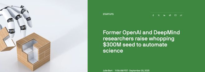 PeriodicLabs已获3亿美元融资,并计划在加州北部建立实验室,用机器人大规模运行科研实验,让AI从中不断试错学习,最终实现「自我实验」。