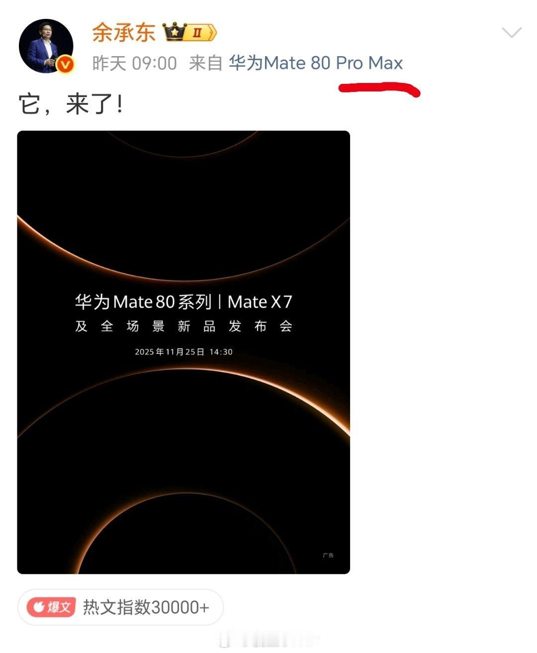 华为是真有钱啊,听别的博主老师说11月25号Mate80系列发布会,28号鸿