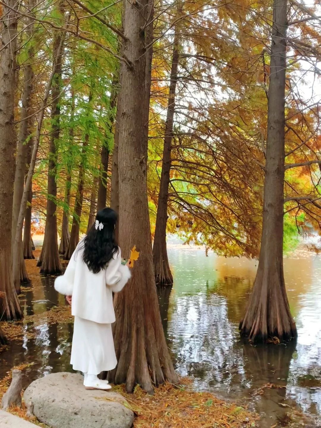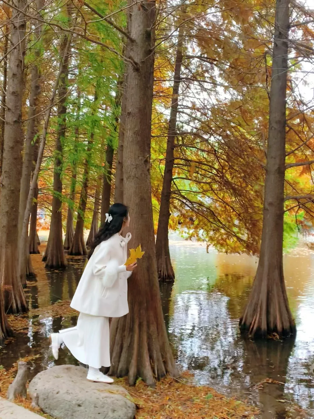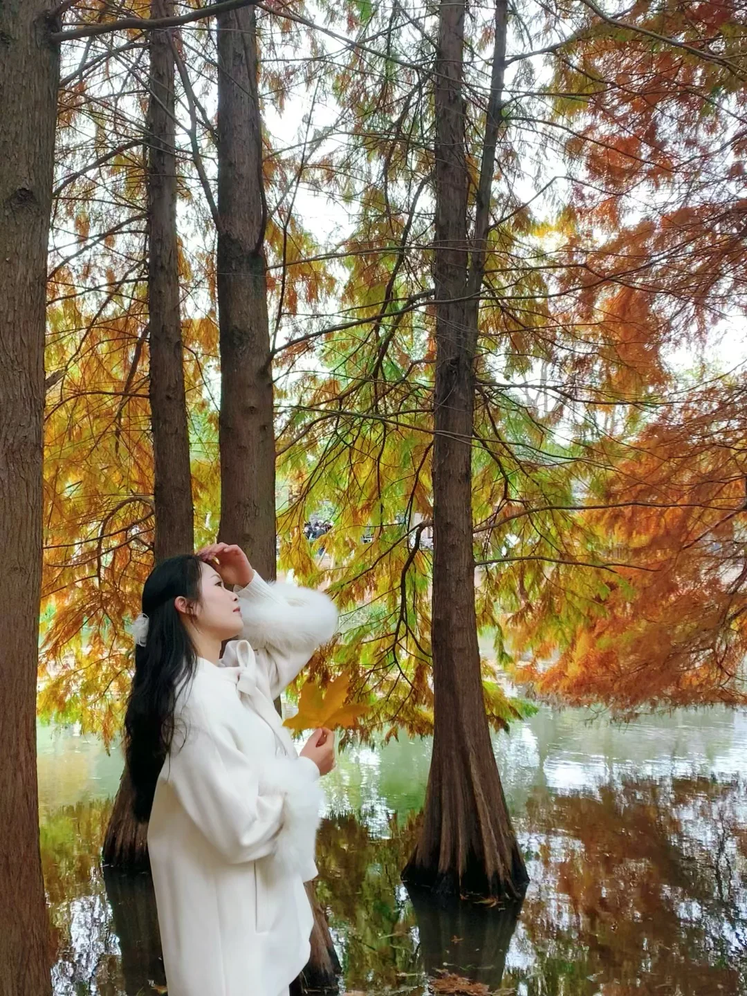 让我们相遇在南京的秋天‼️ . 🌈这周开始,南京的秋景 迎来了一年中坠美的时候🍁 燕雀湖边的红杉林美得不像话... 会无数次爱上南京✨ . 📍2号线苜蓿园1号口出口步行3分钟 💰70r门票,学生半价 也可以在门口湖边看红杉树,不用门票 🍁穿纯色,晴天巨出片!!! 周一人不多,可冲—— .