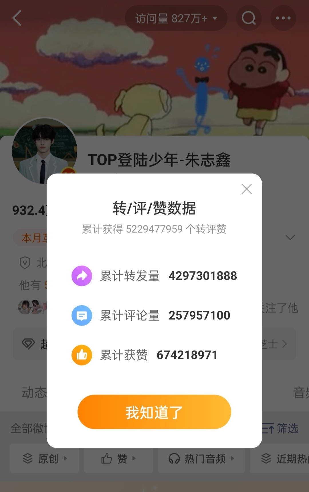 朱志鑫【微博转赞评】破52.29亿💥内娱男明星排名第一!全内娱排名第二!