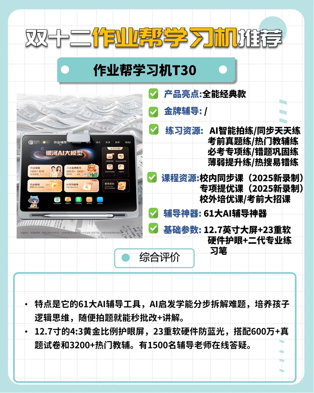 12.7寸超大屏看着就爽!八大金牌练习+61大AI工具升级,中高年级提分、综合题型突破都能hold住,中高配里的天花板非它莫属~