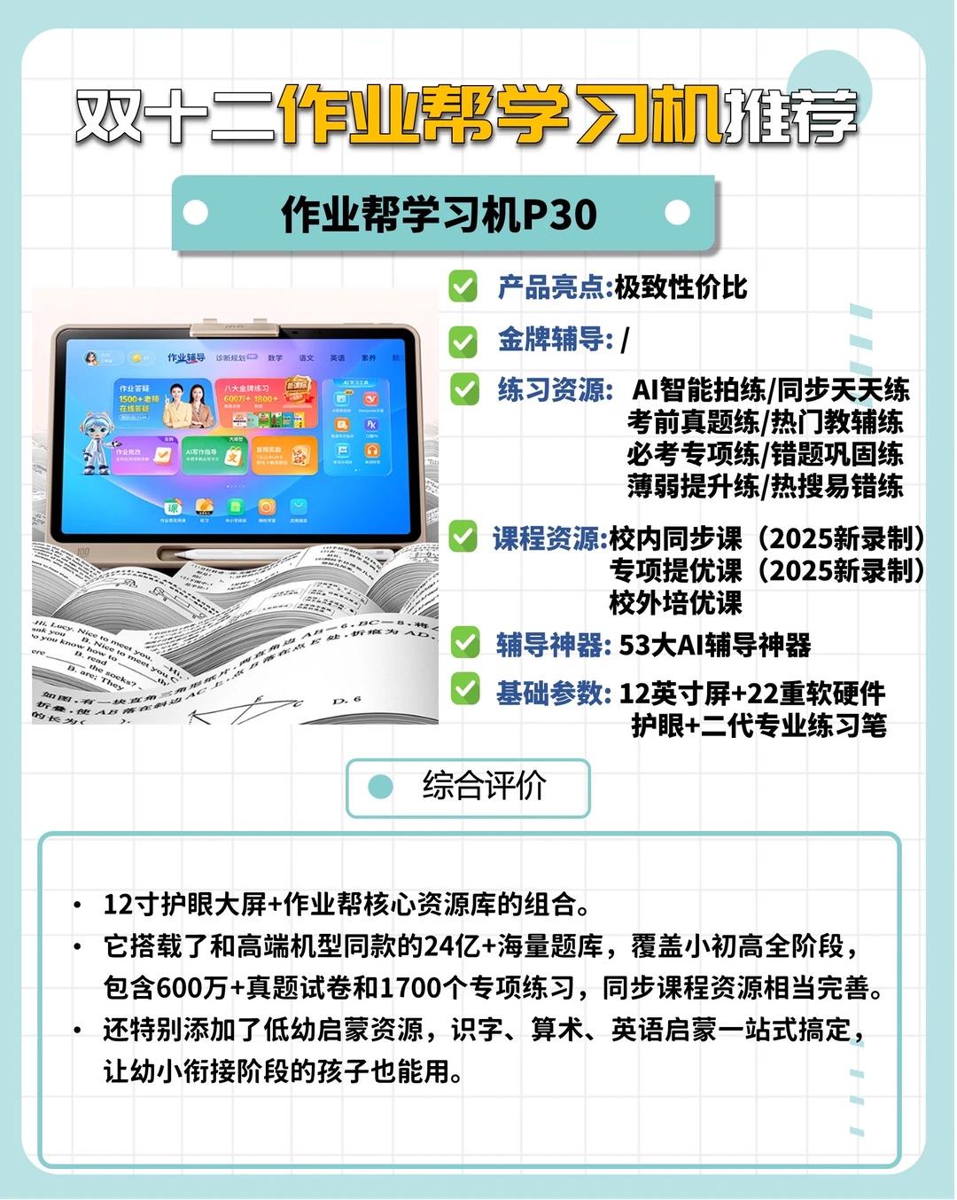 12寸护眼屏+大品牌完整题库,低年级打基础、日常辅导+课后练习全够用,预算有限也能给娃靠谱助力,性价比直接拉满!