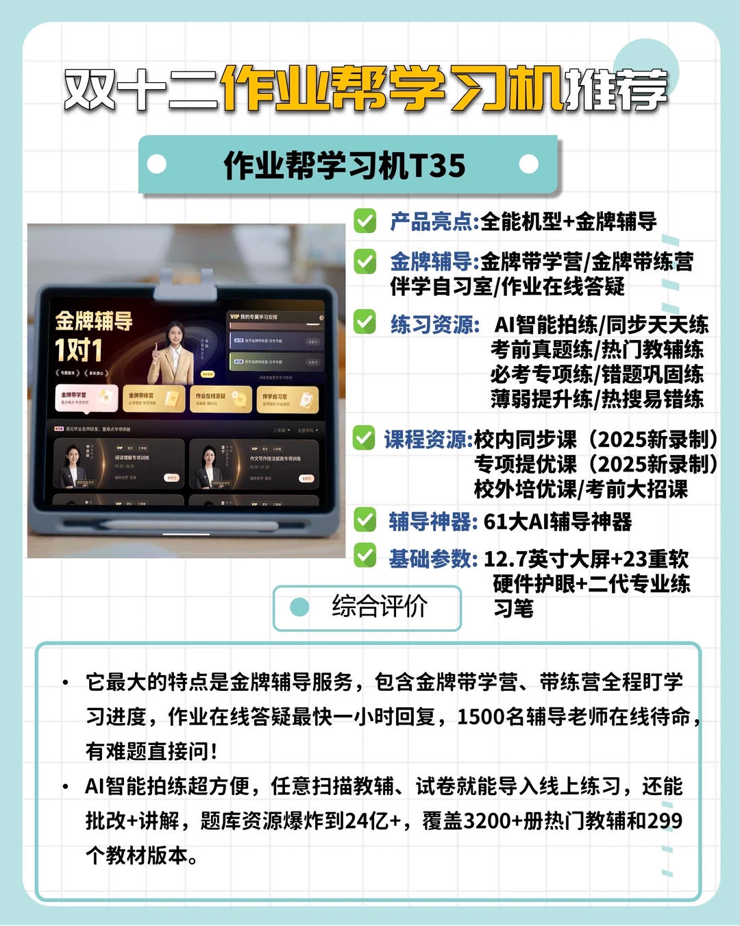 作业帮今年真的放大招了!2025焕新版学习机把学练资源直接拉满,陈哥我扒了三款热门型号,从两千到四千档全覆盖,每款都是同价位闭眼冲的狠活款,还特意做了详细功课,按娃的年级和预算选就对了~