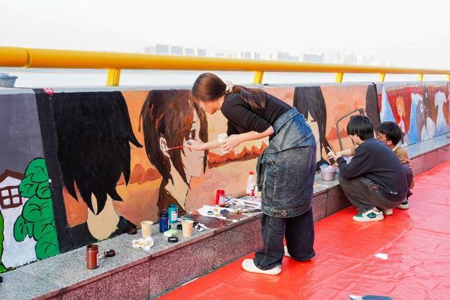 11月16日下午,2025同一条钱塘江·钱塘江海塘彩绘活动在杭州滨江樱花大道海塘举行。本次活动以“钱塘江文化”“保护母亲河”“生物多样性”为主题,面向公众广泛征集绘画作品,最终30幅作品通过海选。活动现场吸引了来自中国美术学院、杭州师范大学以及杭州江城中学、学军小学、百丈小学等青少年共150余人参与。