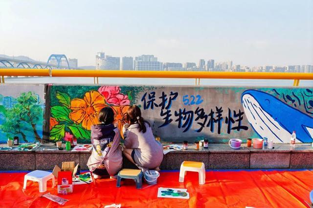 活动现场,志愿者们以画笔为媒介,将创意与热情倾注于海塘墙面。经过三个多小时的精心绘制,累计完成160米彩绘画段,使海塘面貌焕然一新。这些作品生动展现了公众对保护钱塘江生态环境的热忱,对建设文明城市、守护生物多样性的坚定信念,以及对钱塘江自然奇观的深情礼赞。来自杭州师范大学、浙江水利水电学院、杭州江城中学的志愿者还在现场介绍了各自作品的创作理念,从生态保护、文化传承、生物多样性等角度,表达了青年一代对母亲河的关注与责任。