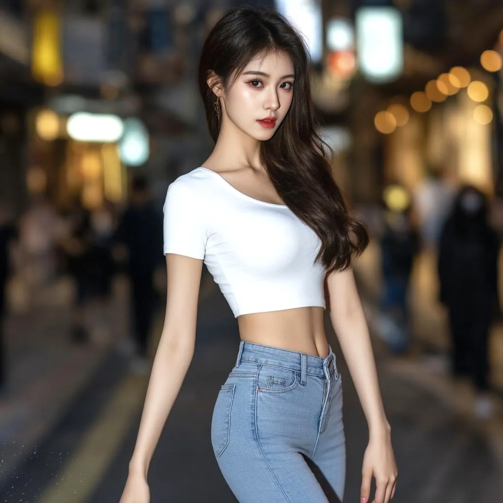 街拍美女模特,紧身牛仔裤yyds,小蛮腰