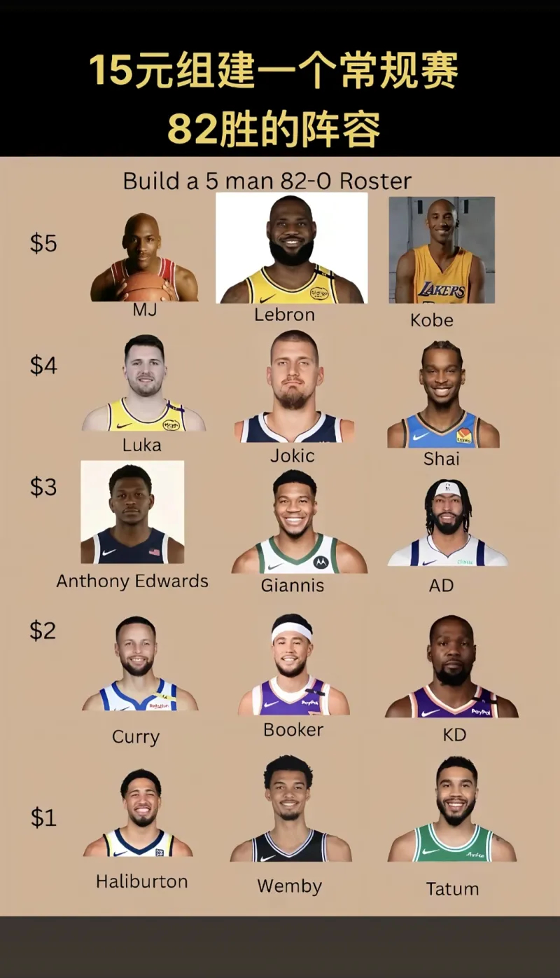 用15美元组建一套常规赛82胜的阵容,你会怎么选?