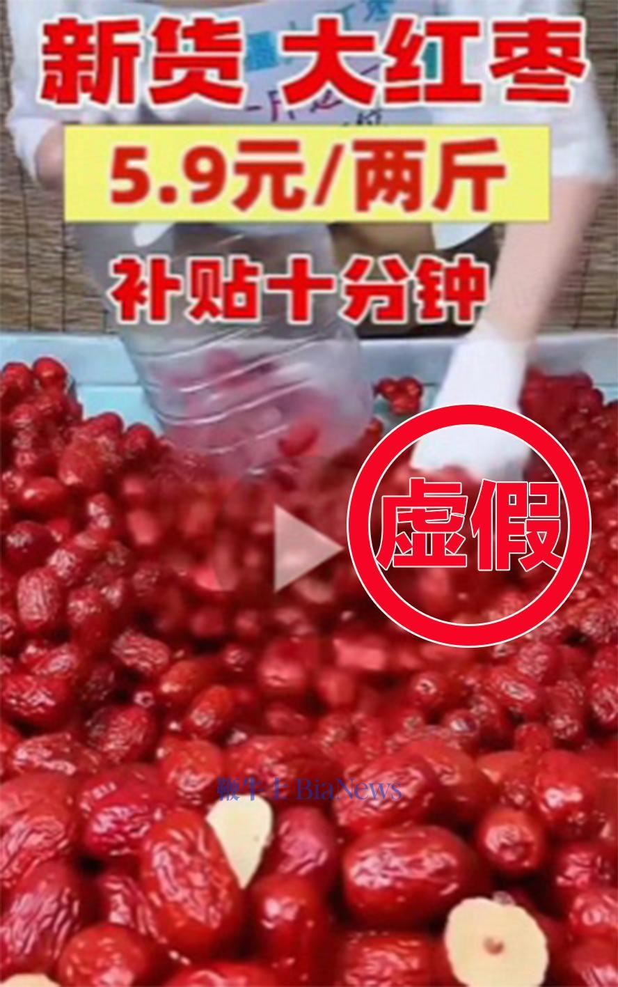 某商家售卖红枣,直播间展示红枣切片为小核、果肉密实、新鲜,现场装桶打包,宣传“到手2斤”。实际消费者收货后果肉干瘪、发苦,且普遍重量不足。经平台核实,上述商家涉嫌严重虚假宣传,平台根据《商家[虚假宣传]细则》,对该商家进行了清退处置。