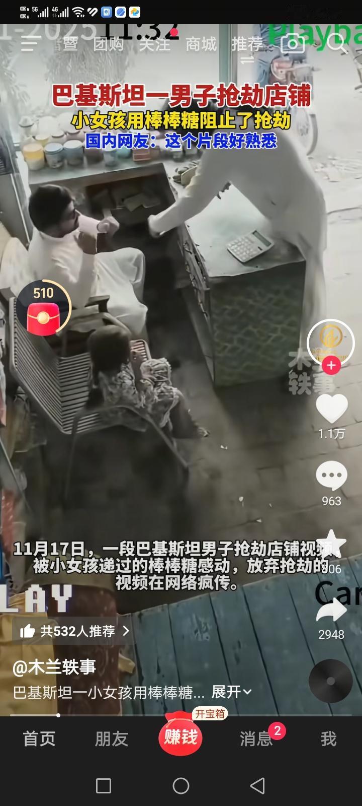 看到一个不知真假的视频,一巴勒斯坦男子去一小店抢劫,那男子一进了小店就扇了店主一耳光,然后从抽屉里拿走了钱,还有一件物品。小女孩伸手把棒棒糖递给了那名男子,那名男子最终放下了钱和物品,棒棒糖也没要,那名男子亲了小女孩一下,然后走了。是不是感觉很熟悉?没错。和周星驰电影《功夫》里面情节很相似,一颗棒棒糖,唤起了善意。目前还并不确定这段视频是不是真的。如果是真的,只能说功夫这部片,那艺术成分确实真的有三四层楼这么高。(图片信息来源:木兰轶事)外国抢劫 巴勒斯坦文化 周星 驰 电影《功夫》
