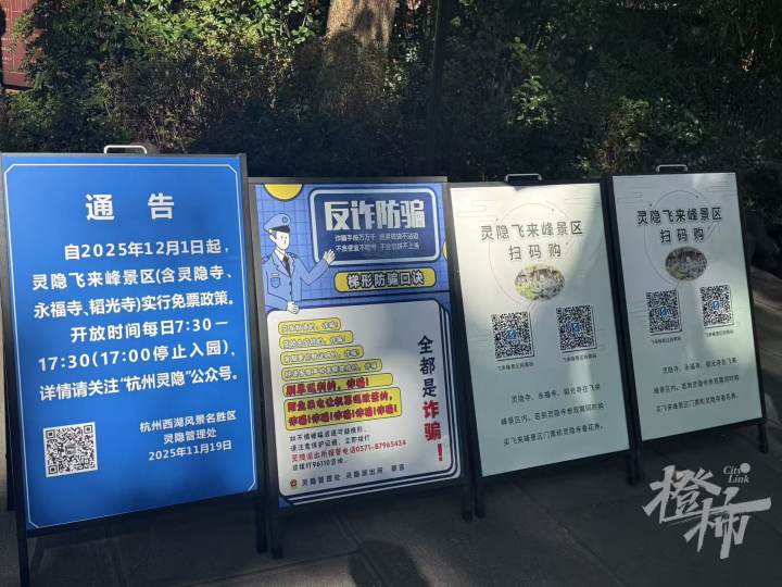 12月1日起,杭州灵隐飞来峰景区(含灵隐寺)实行免票政策