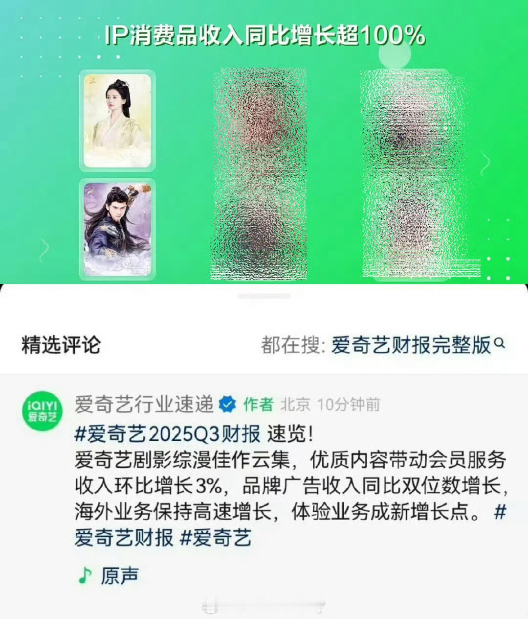 刘诗诗《一念关山》连续两年登爱奇艺财报(会员收入创纪录)刘诗诗《淮水竹亭》连续两季登爱奇艺财报(卡牌收入创纪录)总结:刘诗诗2023-2025年连续三年4登爱奇艺财报
