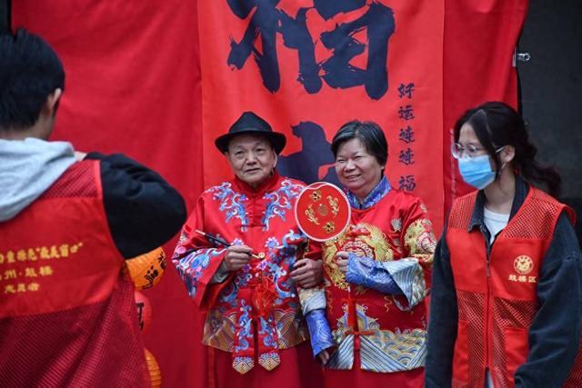 60多岁的陈阿姨特意带着90岁的妈妈来到现场,母女俩穿上鲜艳的秀禾服,拍下了一组温馨的母女照。“和妈妈的合照很少,平时合影甚至有些不好意思。”陈阿姨告诉记者,能够参加这样的活动,她们特别开心。还有结婚几十年的老夫妻,穿上秀禾服,弥补当年的遗憾。此外,还有几位邻居小姐妹相约而来,在“家园记忆”背景前拍下了一张珍贵的“老友记”。每一张照片的背后,都凝聚着一段独特的人生故事,而镜头则将这些温暖的记忆悄然收藏。