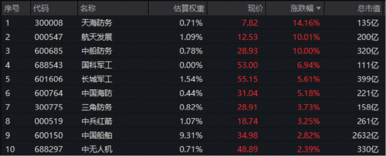 板块高人气国防军工ETF(512810)全面覆盖海陆空天核心资产,局部高温继续,天海防务飙升14.16%创5年新高,航天发展再现一字涨停喜提四板,股价续创三年新高,中船防务首板!