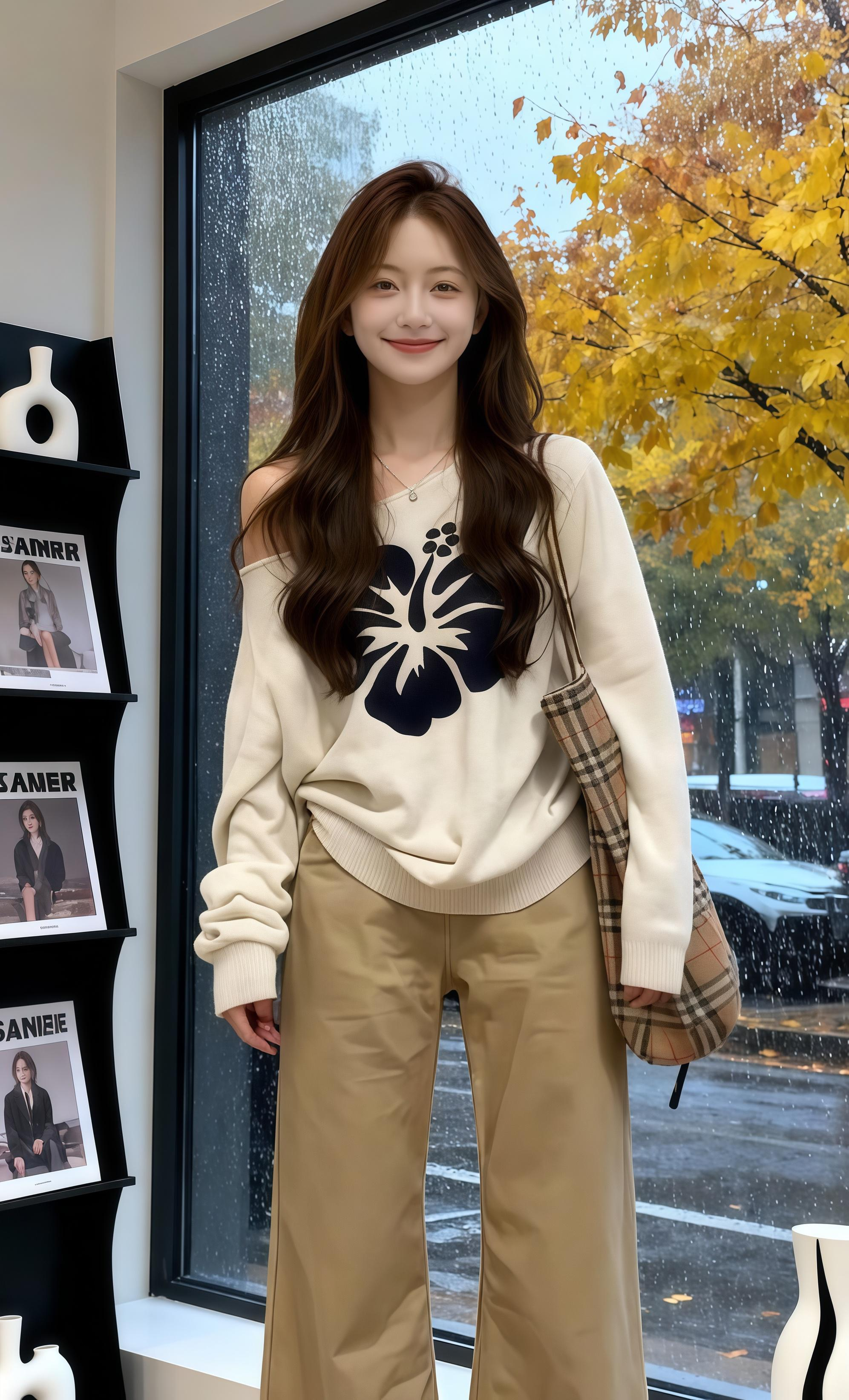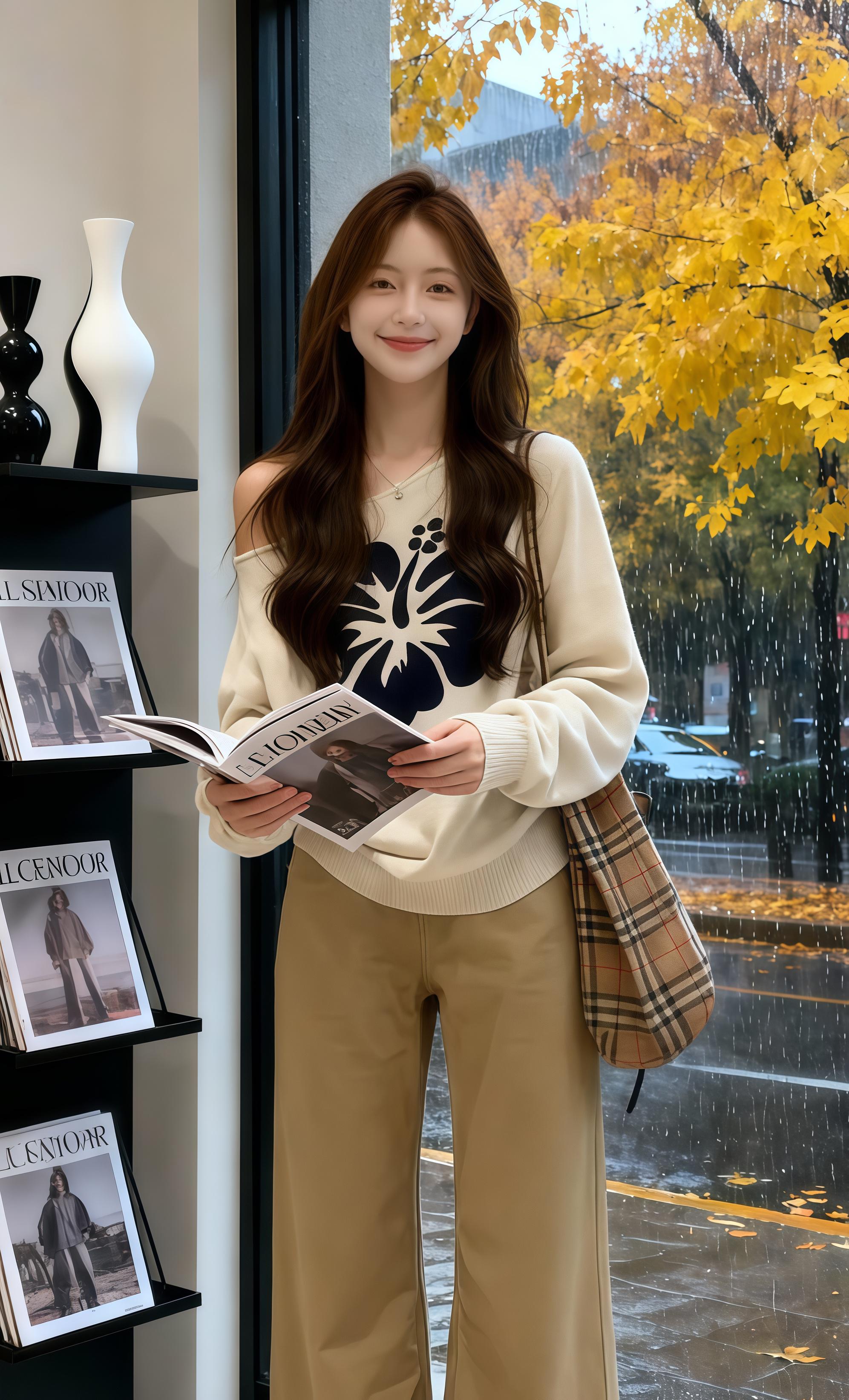 姐妹们都去穿这套韩系气质小香风套装!白色斜肩针织毛衣搭配休闲裤,一整套慵懒随性又高级,上身温柔显气质,甜美又可爱,妥妥很会穿搭的韩系漂亮小姐姐。我真的爱惨了!入冬了我从头到脚都绒化了 韩系穿搭 谁穿谁好看
