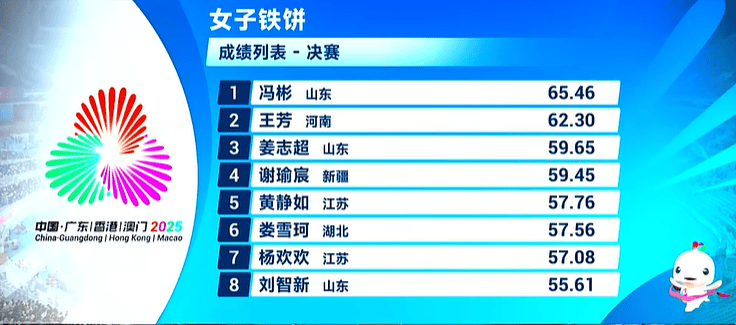 全运会女子铁饼决赛:冯彬65米46卫冕,王芳姜志超分列二三