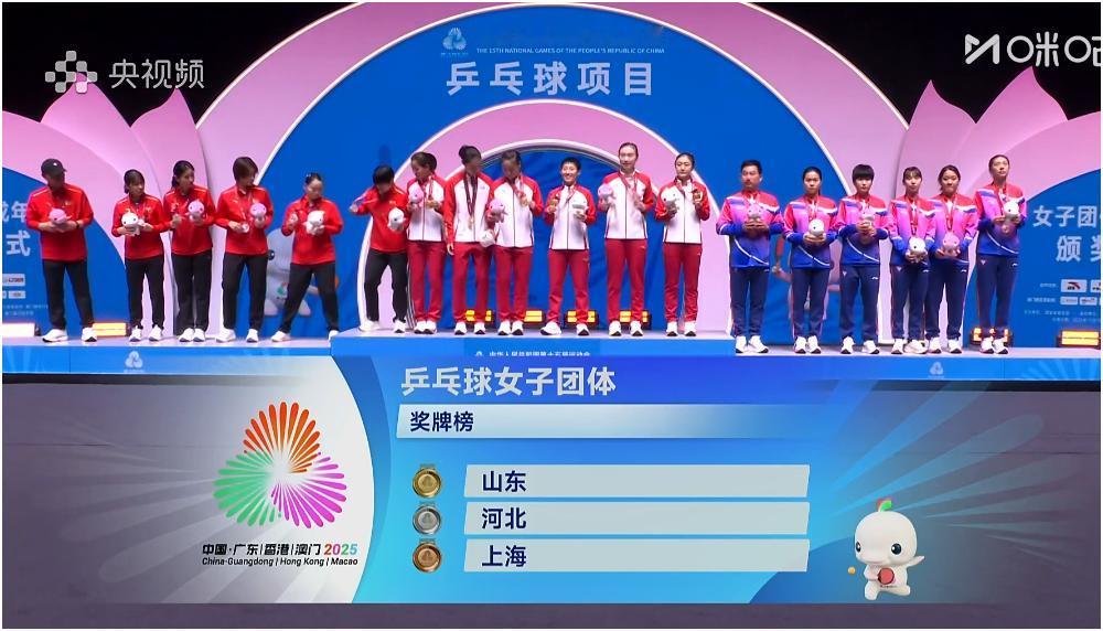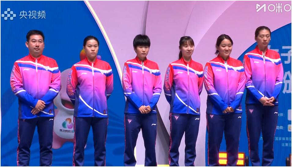 全运会乒乓球女子项目结束,9块奖牌归属。 女团金牌:山东队(陈梦、范思琦、王晓彤)。 女团银牌:河北队(孙颖莎、何卓佳、王添艺)。 女团铜牌:上海队(陈熠、杨乾韵、孙铭阳)。 女单金牌:王曼昱。 女单银牌:孙颖莎。 女单铜牌:陈梦。 另外刘诗雯获得了混双金牌,蒯曼获得了混双银牌,王艺迪混双铜牌。