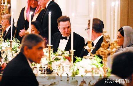 18日,美国华盛顿,白宫东厅,特斯拉首席执行官马斯克出席官方晚宴。