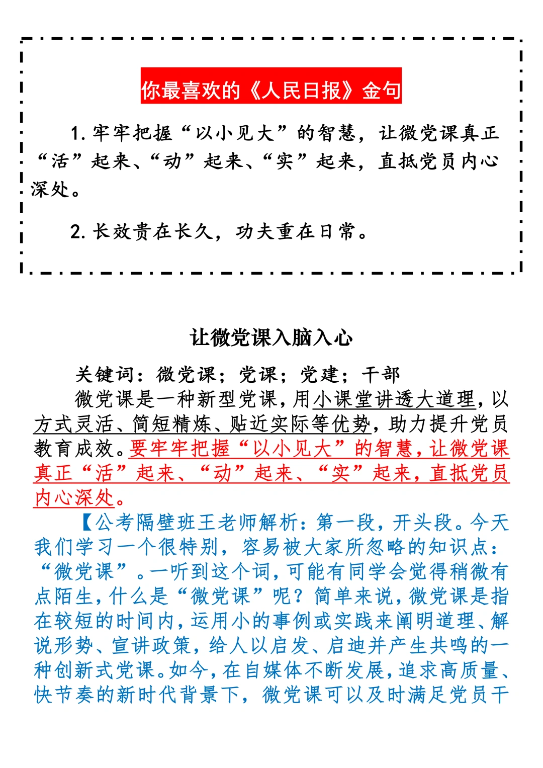 申论范文:让微党课入脑入心