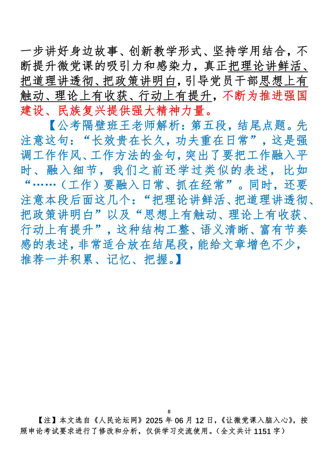 如何抄写:每日抄写文章发在“公考隔壁班王老师”账号,红色字是重点句和结构句,黑色字是正文,蓝色字是解析,大家抄写时不必抄蓝色字。建议先通读全文,做到心中有数再开始抄写,效果会更好。关于文章:抄写文章来源于人民日报,但每篇文章我都根据申论考试要求进行了修改:一是重写或修改开头、结尾;二是统一段首句句式结构;三是调整段落字数,使文章结构更均衡;四是简化复杂长难句,使之更具可模仿性。每篇文章无论修改多少,都是基于申论考试要求,毫无对人民日报文章品评之意。(此处致敬人民日报)
