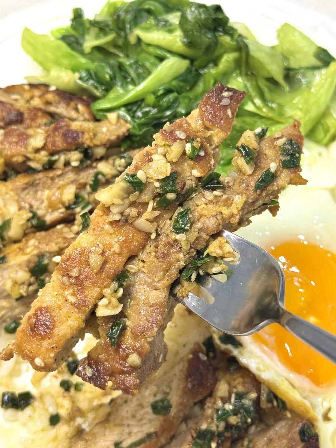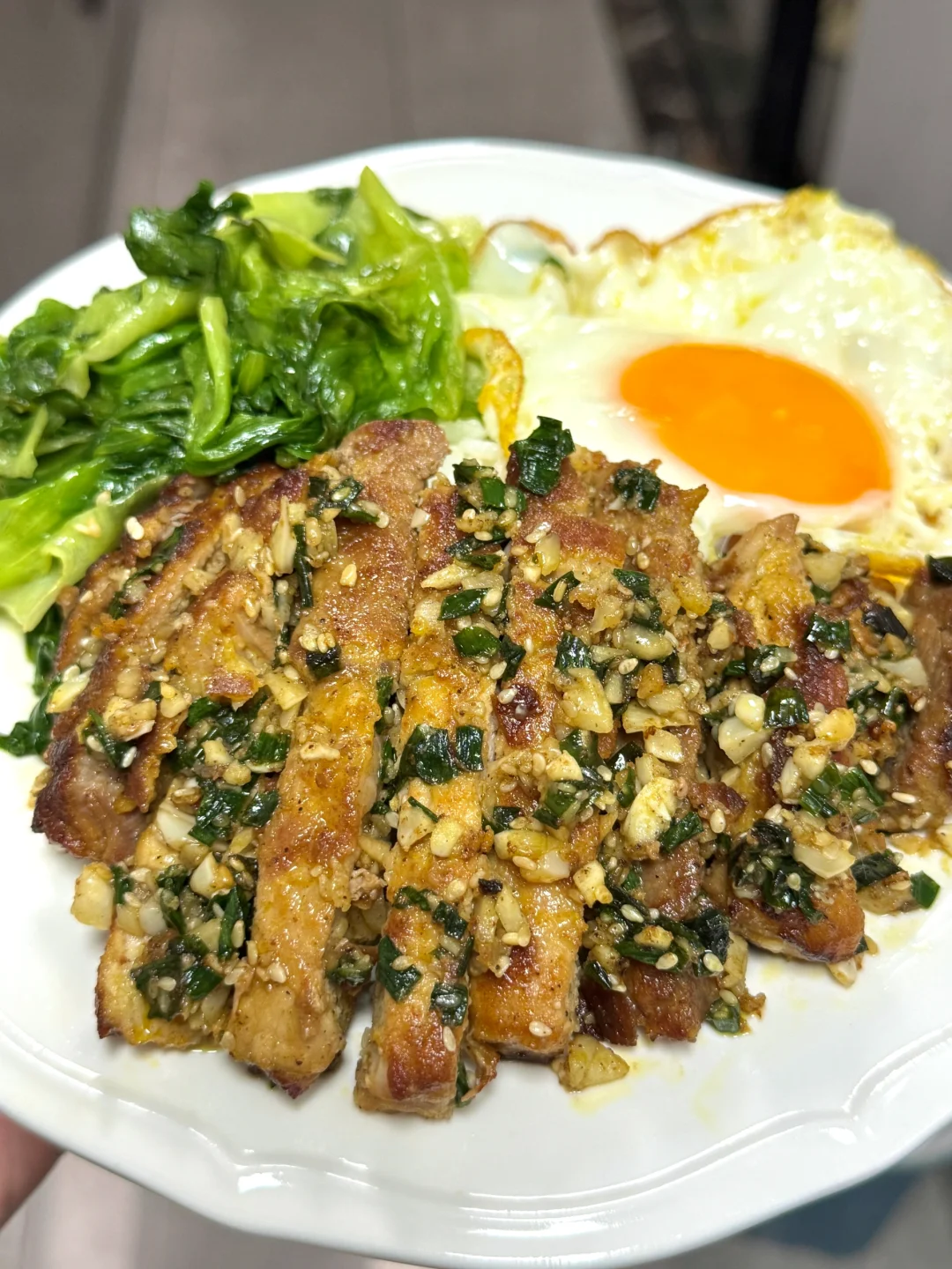 [星R][星R]巨巨巨好吃的盐葱猪排就做好了咯,再烫几颗青菜,煎一个溏心蛋就是美味的一餐,一定要试试~