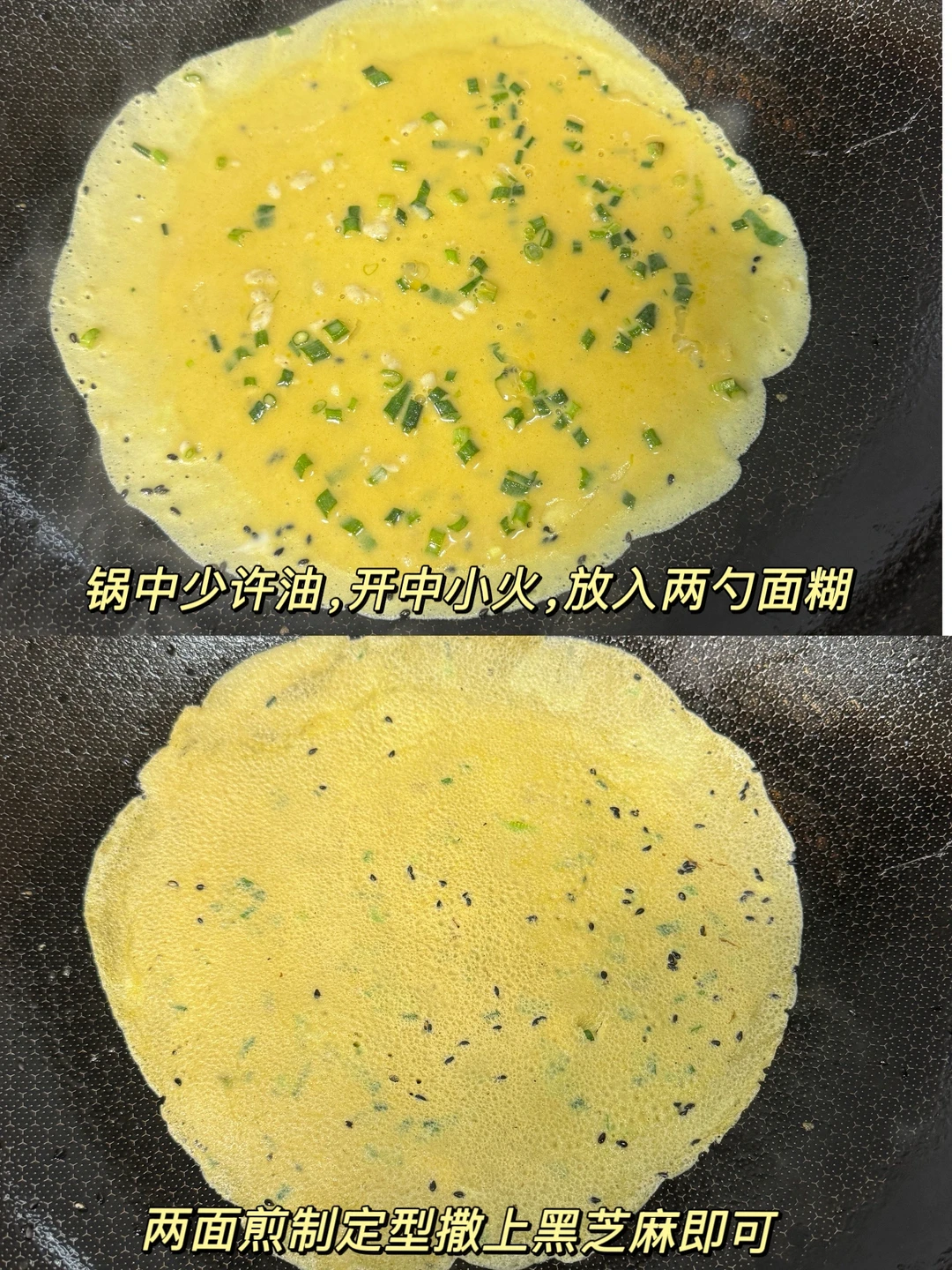[彩虹R][彩虹R][彩虹R]减脂期的姐妹快试试这个荞麦鸡蛋水饼,[派对R]超级好吃!简单易上手,十分钟就能搞定~[赞R][赞R] 食材: 荞麦粉、鸡蛋、葱花 做法: 1️⃣碗中放50g荞麦精粉、100g清水、一勺盐、三颗鸡蛋、大量葱花,搅拌至无粉状态 2️⃣起锅少油,放入两勺面糊,全程中小火满煎,剪至两面定型撒上黑芝麻 3️⃣土豆丝炒熟,用荞麦卷饼裹成圆条 [萌萌哒R]这个纯荞麦粉粉质非常丝滑细腻,可以直接代替面粉,配料表也很干净,只有蒙古荞麦,无麸质更健康!