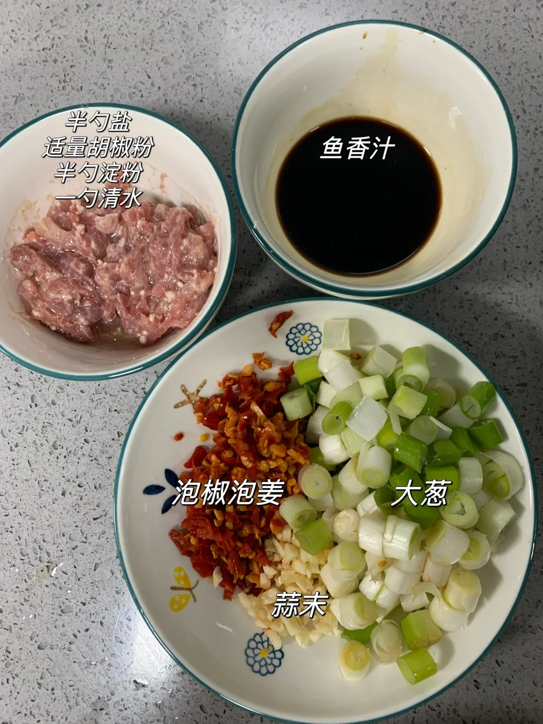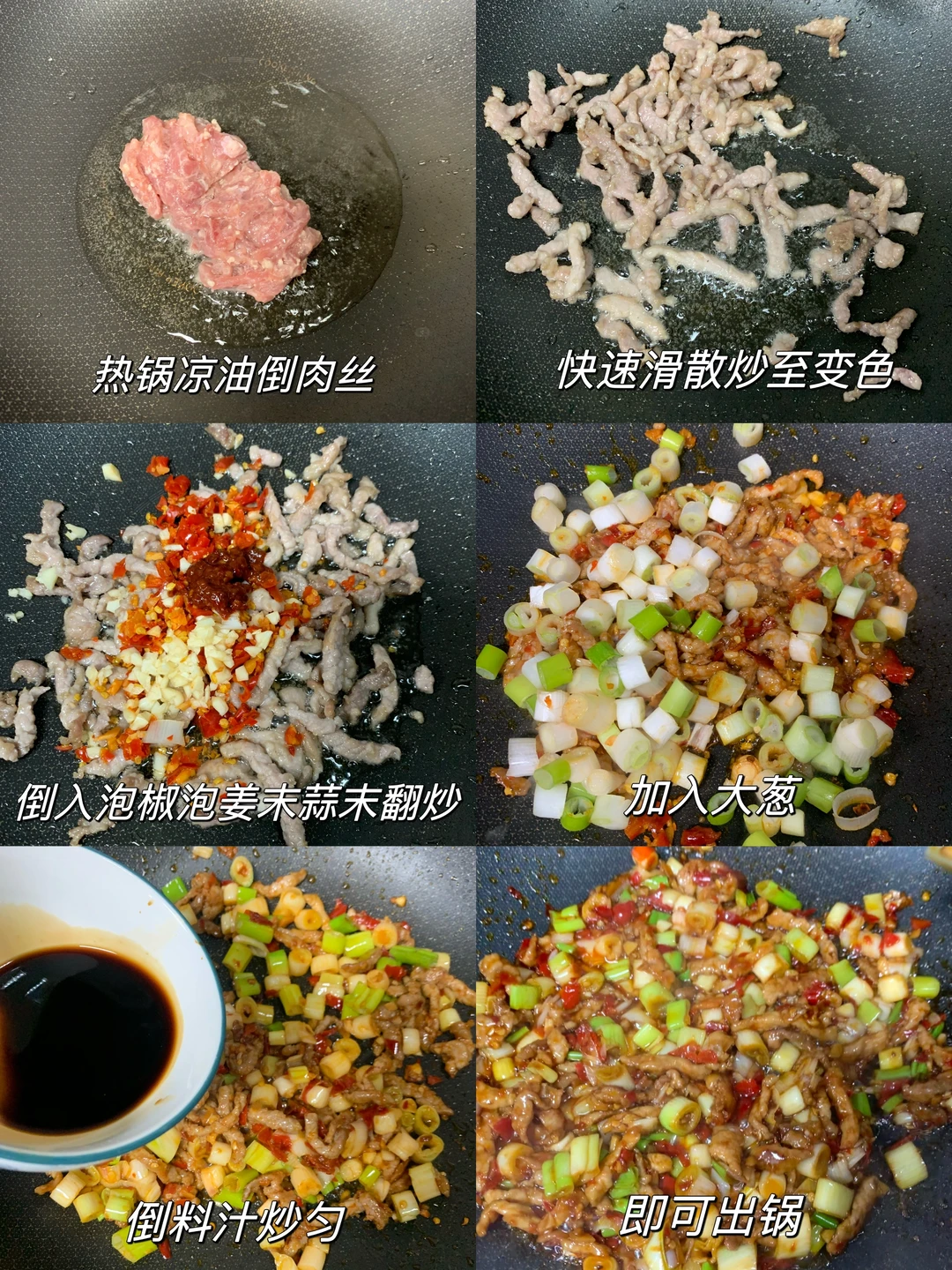 [星R][星R]正宗重庆版鱼香肉丝!个人感觉比木耳胡萝卜版更好吃[色色R]肉丝炒得很入味且嫩滑~裹满料汁,简直是下饭神器啊啊啊! 食材:猪肉、大葱、泡椒、泡姜、蒜 鱼香汁:半小勺鸡精➕4小勺白糖➕一勺生抽➕3勺醋➕一勺料酒➕半勺老抽➕半勺淀粉➕一勺清水搅匀 做法: 1⃣️热锅凉油倒入肉丝快速划散炒至变色,加入泡椒泡姜末、蒜末、一勺豆瓣酱炒出红油 2⃣️加入葱段翻炒均匀,倒入鱼香汁翻炒几下即可出锅