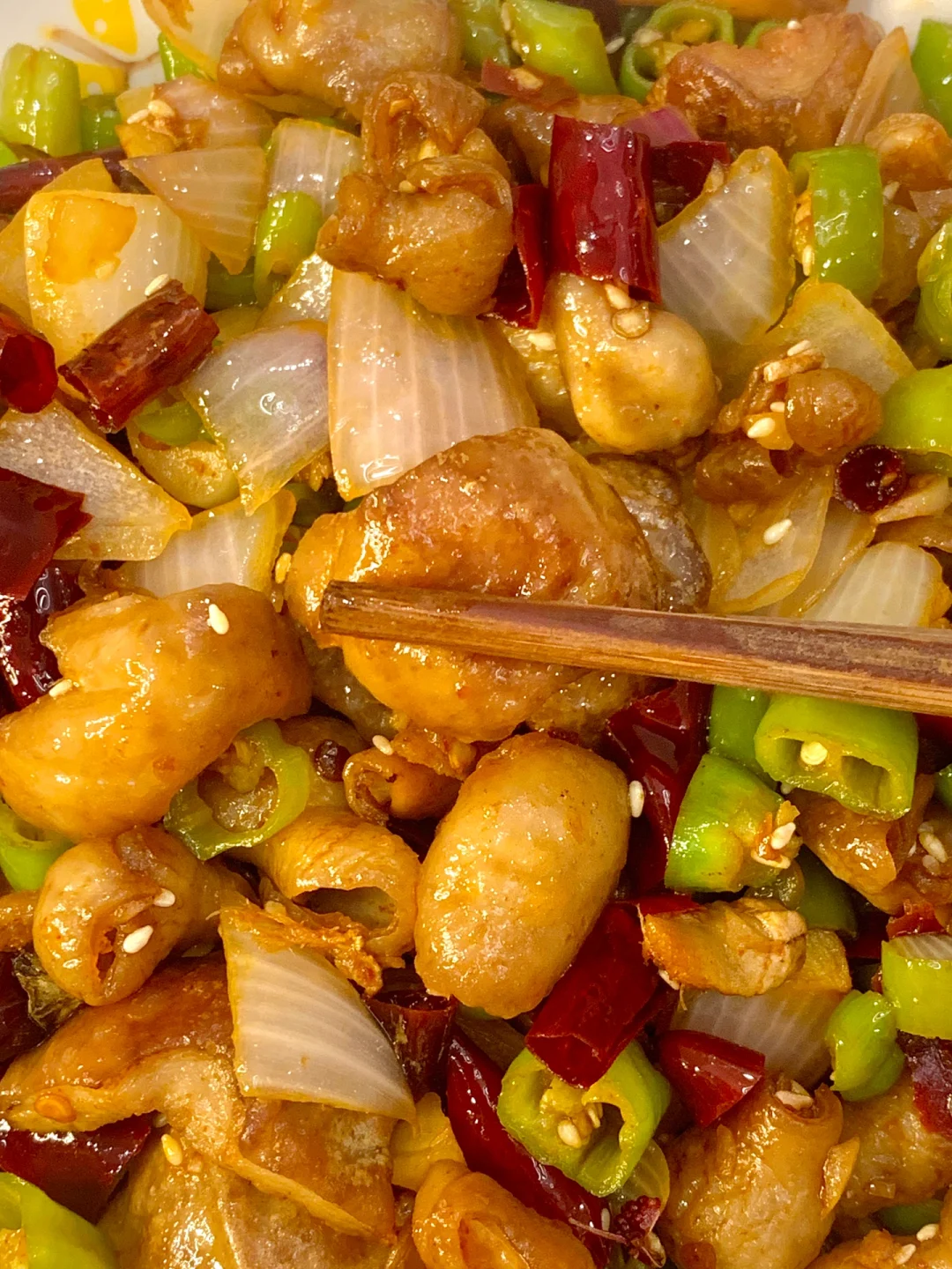 [彩虹R][彩虹R]谁懂啊真的好爱吃肥肠!!这个做法做出来的干煸肥肠真的很绝,谁做谁知道[派对R][派对R] 食材:肥肠、洋葱、二荆条、干辣椒、花椒、生姜、蒜 做法: 1⃣️肥肠洗净,加葱姜料酒煮30分钟捞出切段 2⃣️油热倒入肥肠小火煸炒至焦黄,加入一勺豆瓣酱炒出红油,加入姜蒜干辣椒、两勺料酒翻炒均匀 3⃣️倒入洋葱块、辣椒段炒至断生,加适量盐、鸡精、花椒油、生抽翻炒均匀即可