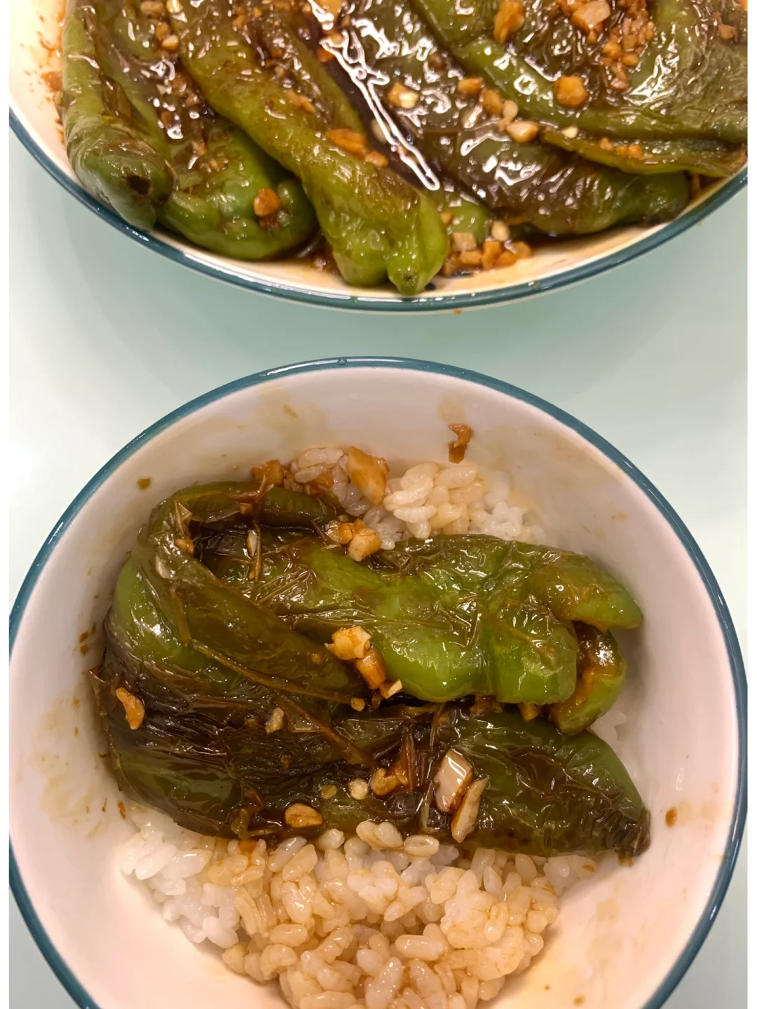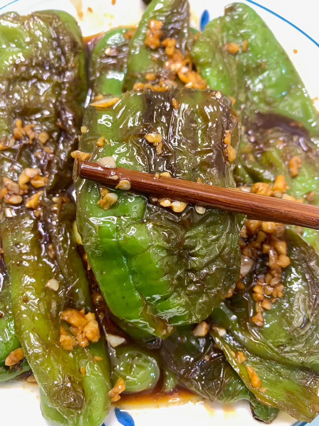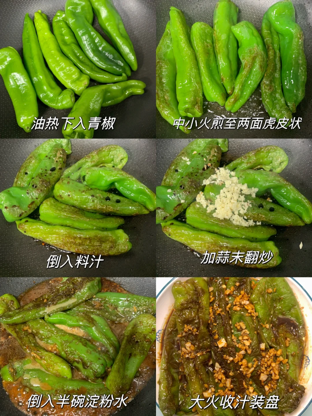 青椒这么做,比肉都好吃‼️配上浓郁的汤汁,一道菜足以消灭两碗米饭!没吃过的一定要试试[派对R] 食材:青椒、蒜 做法: 1⃣️调个料汁:2勺生抽➕一勺老抽➕一勺蚝油➕2勺醋➕一勺白糖搅拌均匀 2⃣️青椒洗净去蒂去籽,擦开水分,油热中小火炸至两面虎皮状 3⃣️倒入料汁翻炒均匀,加入蒜末翻炒,最后倒入半碗淀粉水大火煮至汤汁浓稠即可