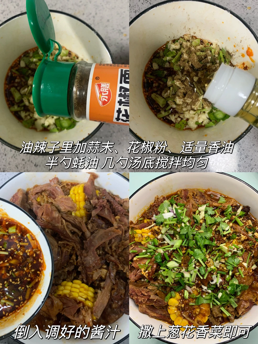 6⃣️料汁淋入碗里,撒上葱花香菜即可