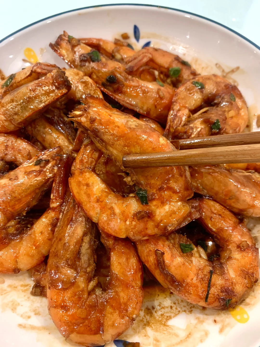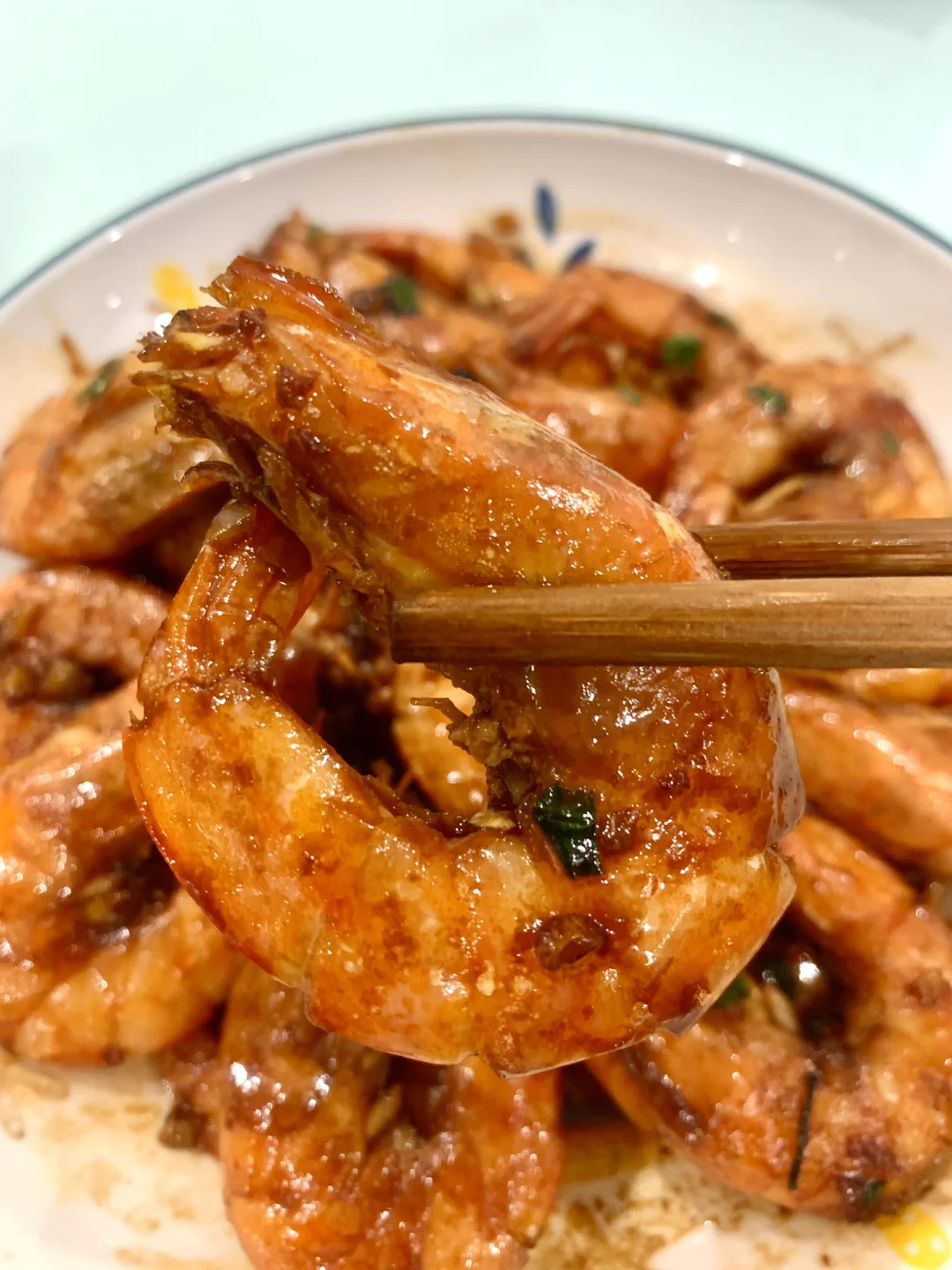 [彩虹R][彩虹R]爱吃虾的姐妹们一定不要错过这道菜!!大虾煎得酥酥脆脆,好吃到连壳都不想放过,做法非非非常简单![派对R] 食材:大虾500g,姜蒜末少许 调个料汁:2勺生抽,半勺老抽,半勺白糖,一勺料酒,一勺蚝油,半碗清水搅匀备用 1⃣️油热倒入大虾,煎至外壳酥脆,按压虾头出虾油 2⃣️倒入姜蒜末炒香,倒入调好的料汁,焖煮2分钟后大火收汁,撒上葱花即可~