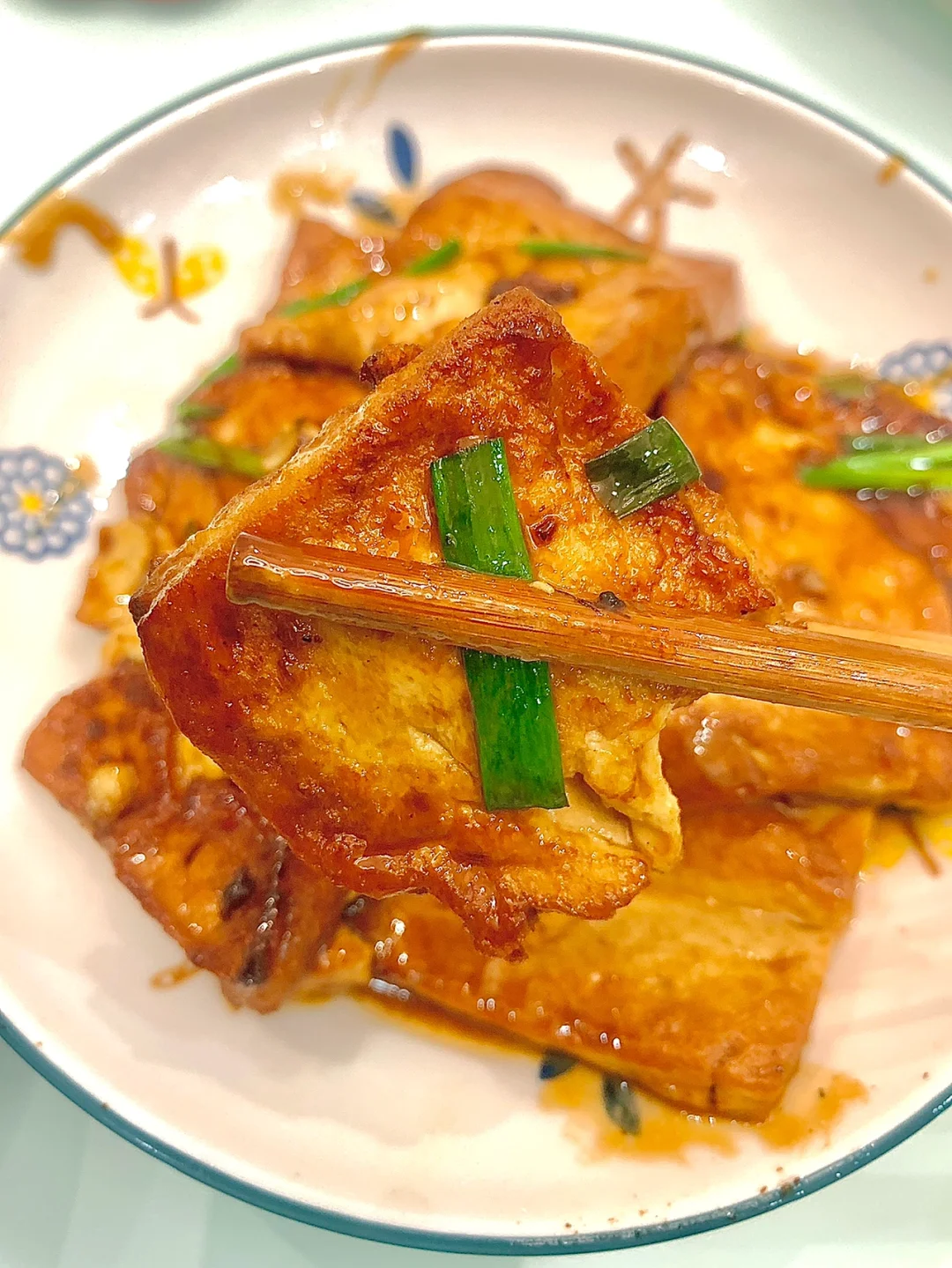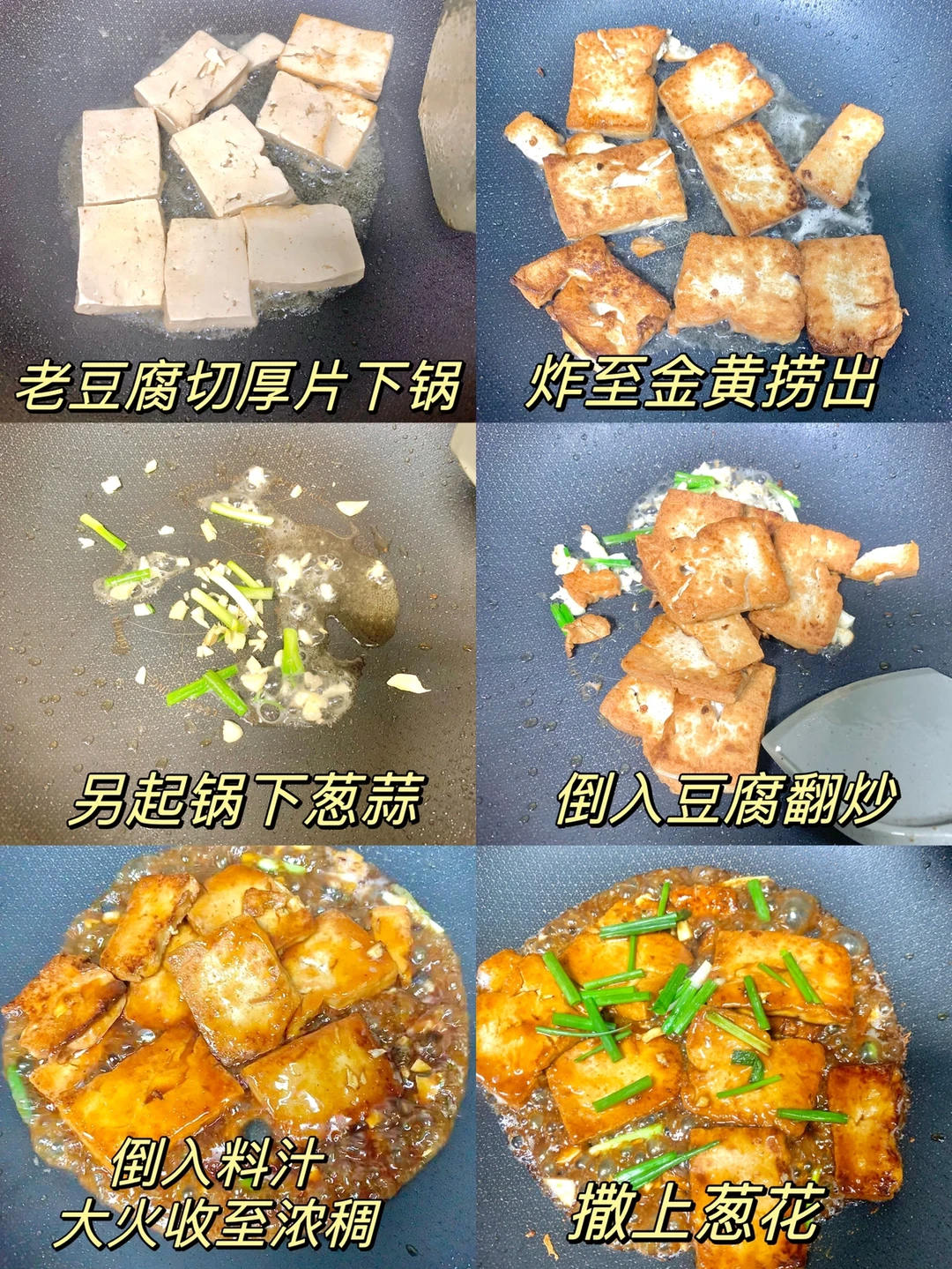 👉🏻外酥里嫩的豆腐配上浓郁的汤汁,简直是下饭神器😺做法非常简单 食材:一块豆腐,葱花蒜末少许 调个料汁:2勺生抽,半勺老抽,一勺蚝油,一勺淀粉,半碗清水搅至均匀备用 1⃣️豆腐切厚片,起锅烧油煎至金黄捞出备用 2⃣️锅中加入葱蒜末炒出香味,加入煎好的豆腐翻炒几下,倒入调好的料汁炒至浓稠,撒上葱花即可 [彩虹R]赶紧试试吧!