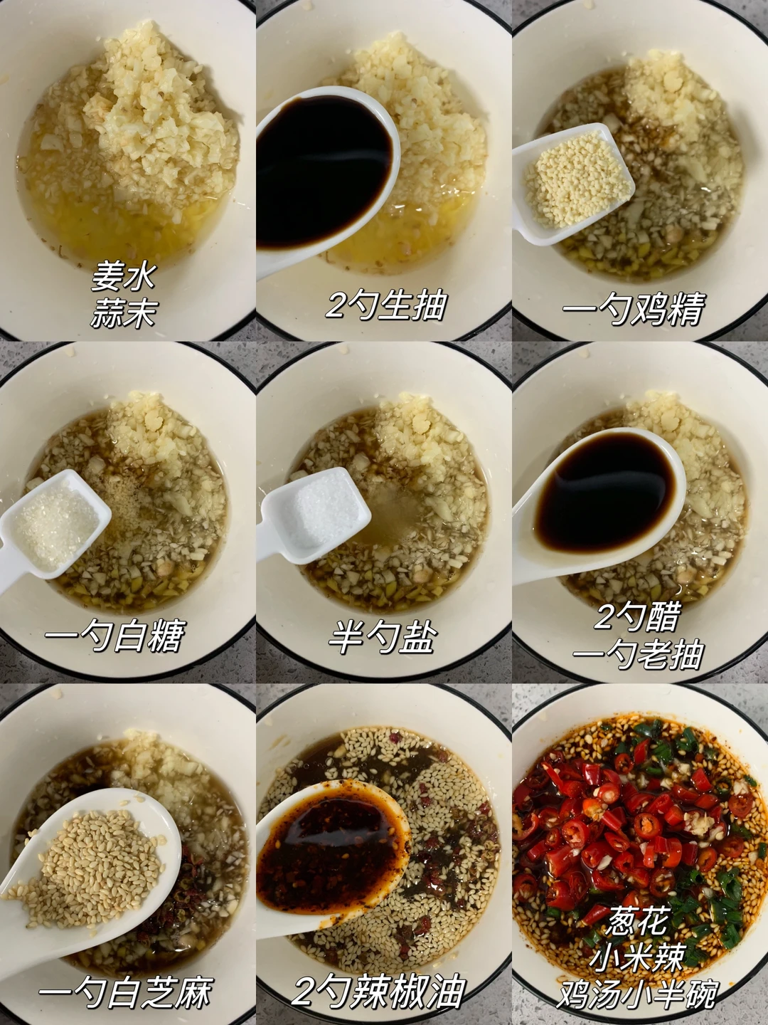 这个做法做出来的口水鸡比外面买的还好吃~[害羞R][害羞R]麻辣鲜香超级过瘾,鸡肉完全不柴!!一定要多煮几个鸡腿,我一个人两个鸡腿不够吃! 食材:鸡腿、蒜、姜、葱花、小米辣 做法: 1⃣️鸡腿去骨,冷水下锅加大葱、姜片、料酒,水开煮15分钟左右,捞出过凉水,切成小块 2⃣️调料汁:少许姜末加两勺水调成姜水、蒜末、2勺生抽、2勺醋、一勺老抽、一勺白芝麻、一小勺鸡精、一小勺白糖、小半勺盐、、两勺辣椒油、小半碗煮鸡汤的水、葱花、小米辣搅拌均匀 3⃣️把料汁浇在鸡块上即可