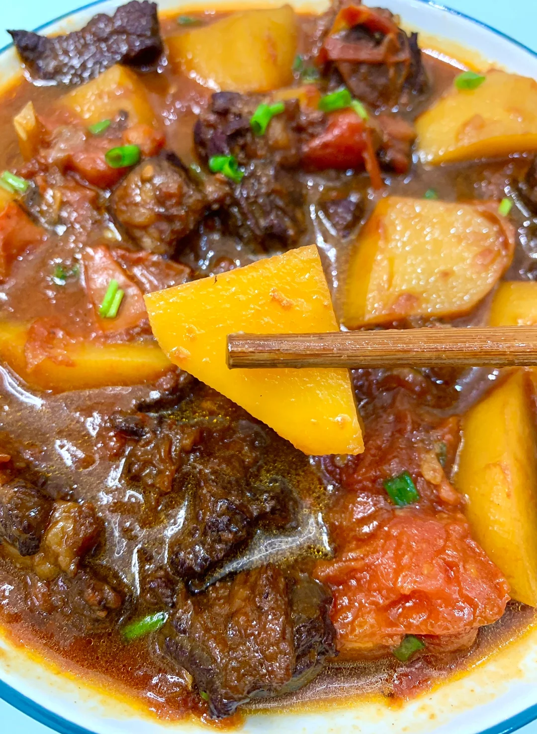 天气越来越冷了,今天炖了一锅番茄牛腩,牛肉入味,土豆软烂,汤汁拌着米饭真的巨好吃[派对R]一定要去试试!!