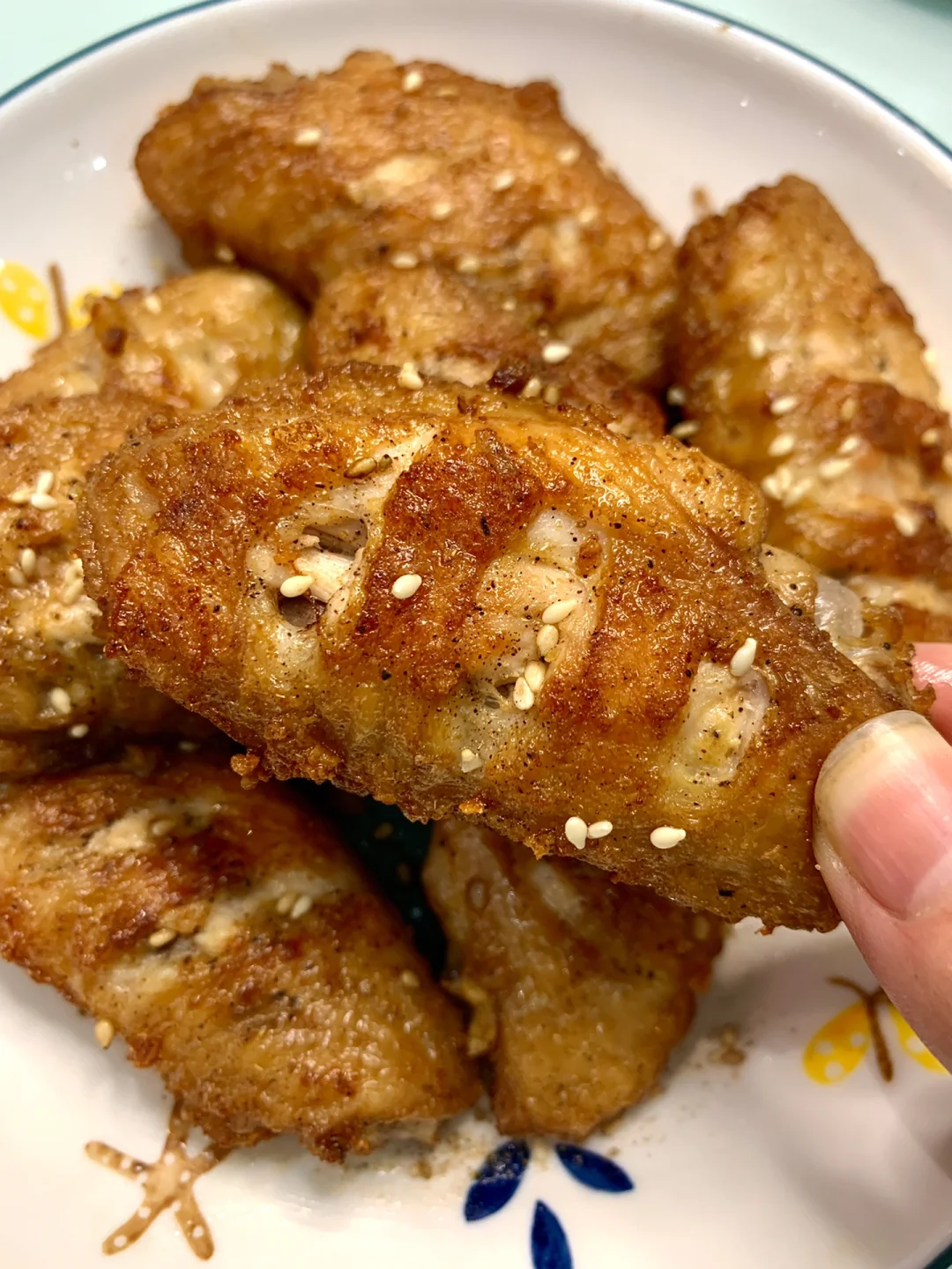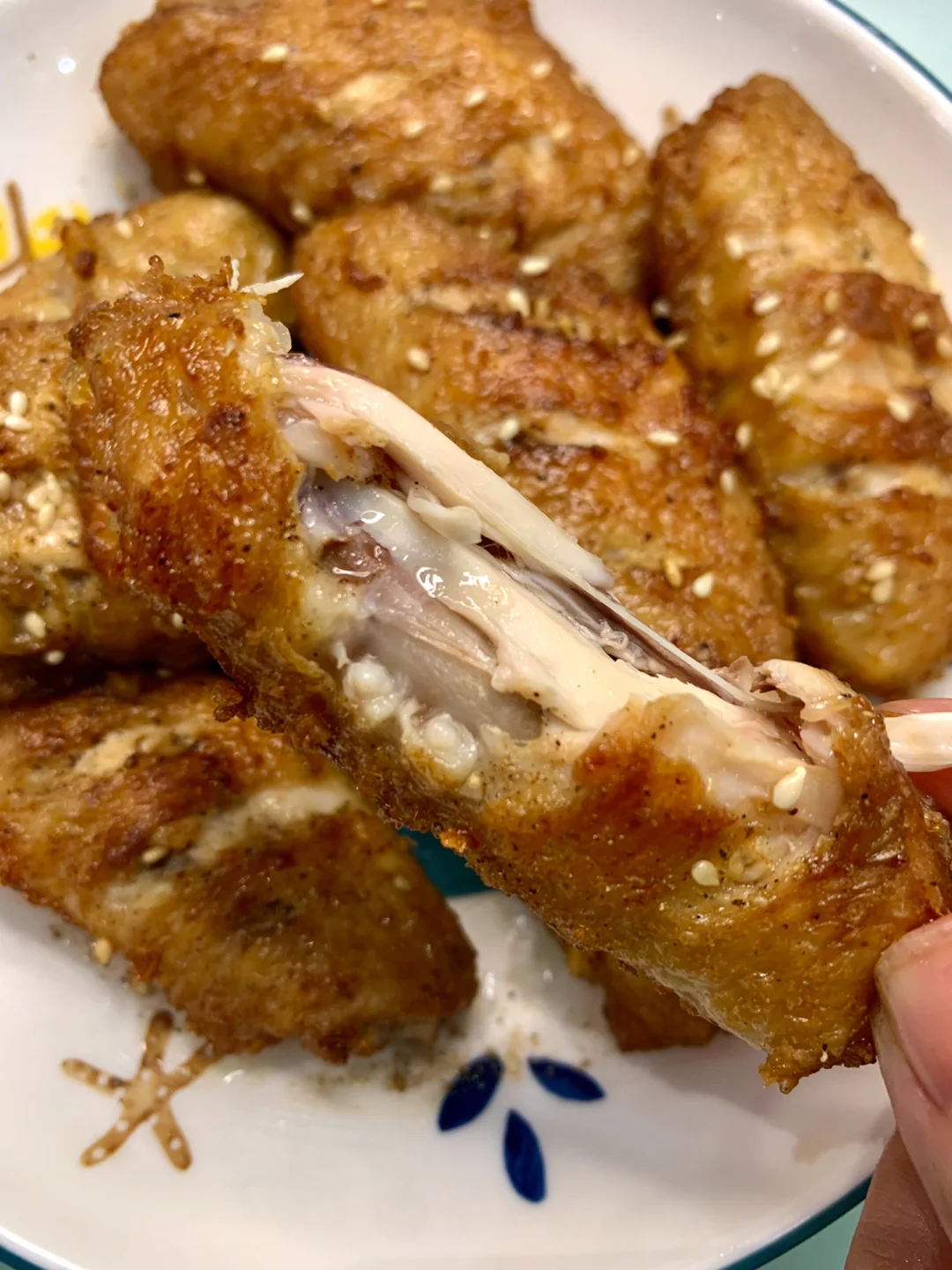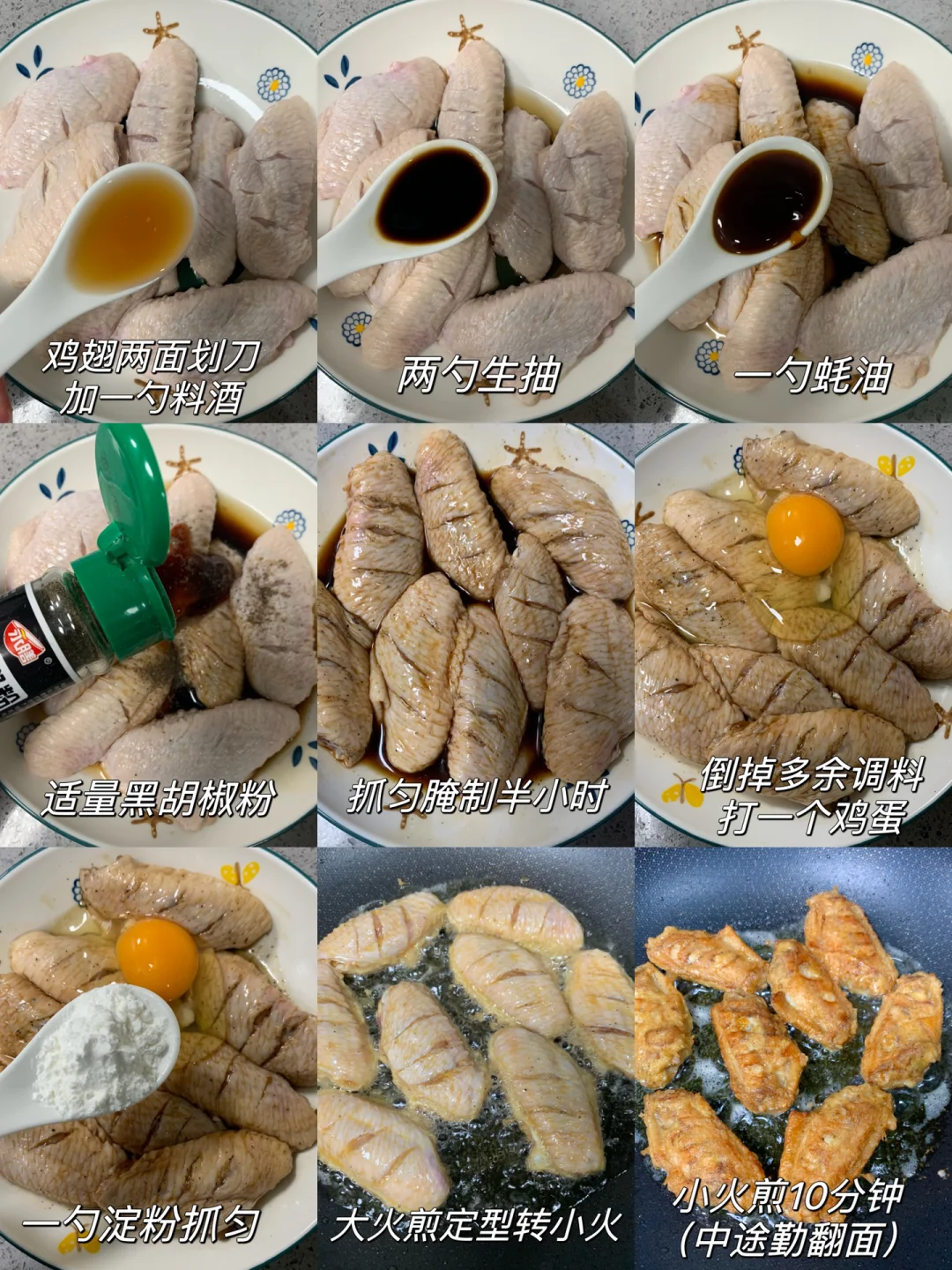 最近老是刷到椒盐鸡翅,口水都流出来了,今天终于做啦[色色R][色色R]一个字:绝!爱吃鸡翅的姐妹们一定要试试啊啊啊!香到骨子里了~🥰 食材:鸡翅、鸡蛋、椒盐粉、黑胡椒粉、白芝麻 做法: 1⃣️鸡翅洗净两面划刀,加一勺料酒、两勺生抽、一勺蚝油、适量黑胡椒粉抓匀腌制半小时 2⃣️倒出多余的调料,打入一个鸡蛋,加一勺玉米淀粉抓匀下油锅炸,大火炸至定型后立马转小火,炸10分钟,终于多翻面,出锅撒上椒盐粉、白芝麻即可~